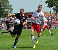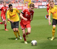 Die Fortuna macht am Ende einer langen Saison den Aufstieg in die 3. Liga auf dramatische Art und Weise perfekt. Vor 7.738 Zuschauern verlieren die Kölner zwar das Rückspiel bei den Amateuren von Bayern München mit 1:2 (0:1), kehren aufgrund der Auswärtstorregel aber in den Profifußball zurück. Dabei gelang das entscheidende Tor erst in der Nachspielzeit: Nach einem Patzer von Reader, der bereits in der Bundesliga debütierte, köpfte Laux das...