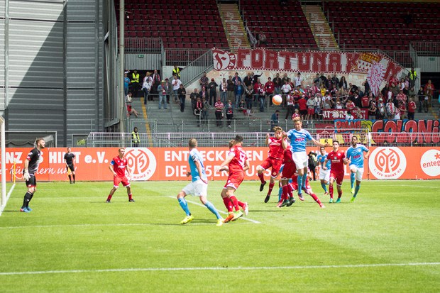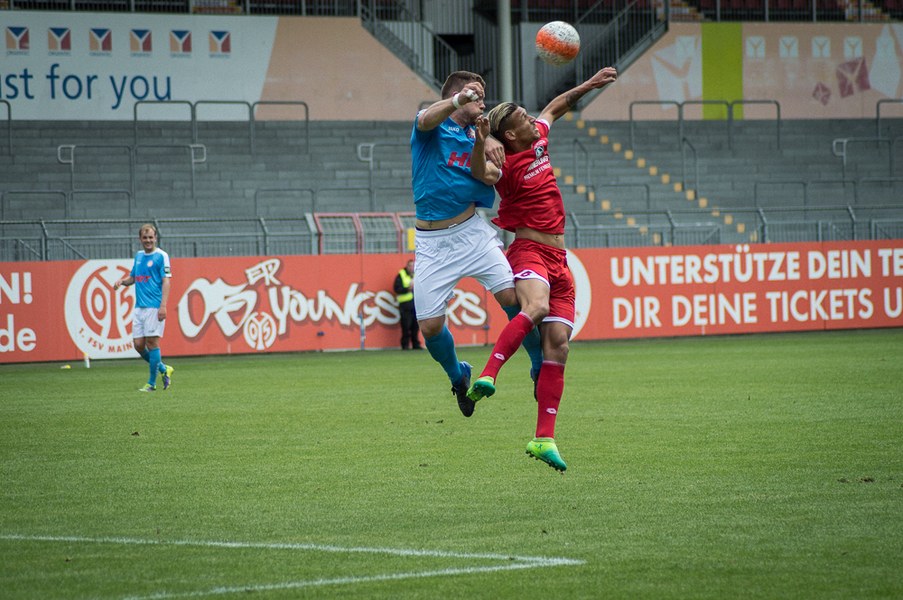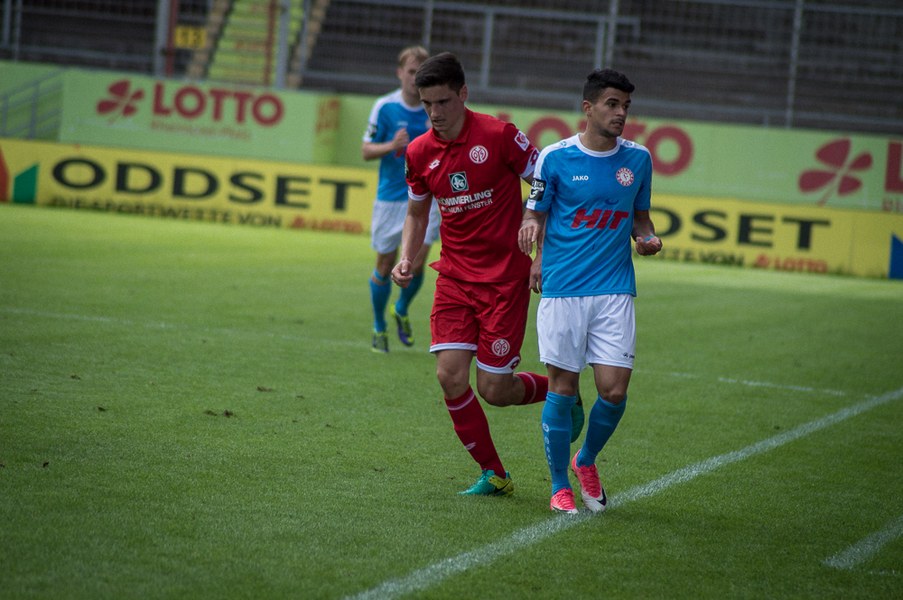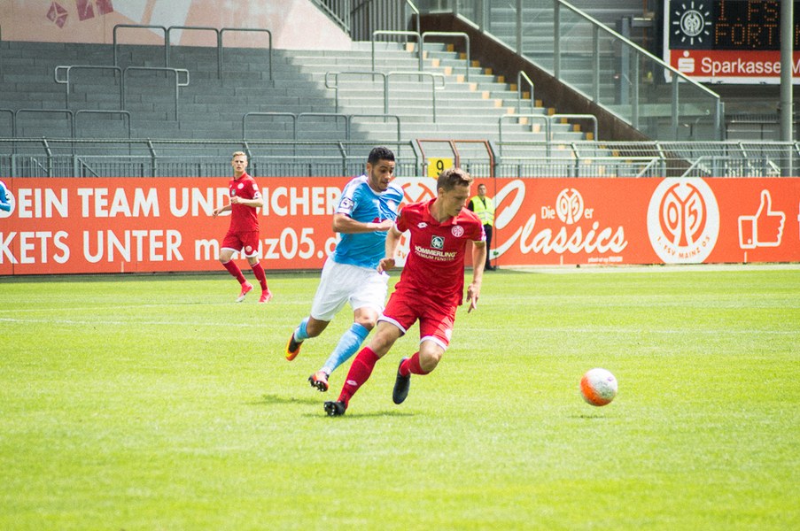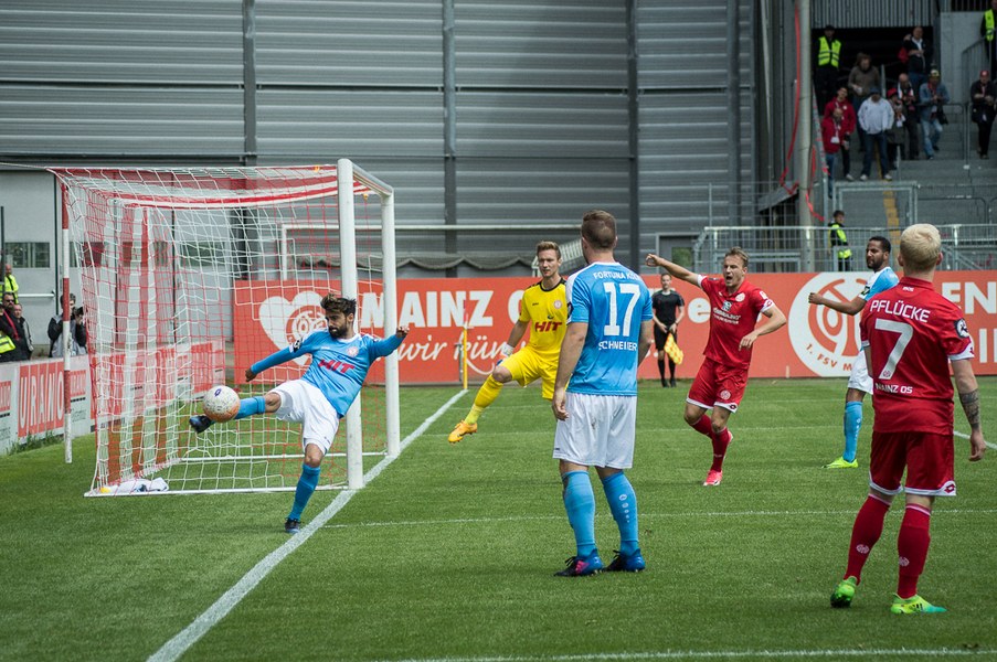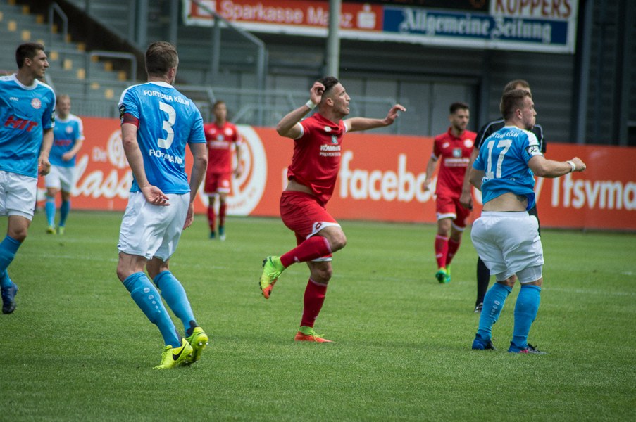 Vor dem Spiel stand der Klassenerhalt für die Fortuna fest, während der Abstieg für die Mainzer U23 besiegelt war. Bei den Kölnern waren Kessel und Theisen gelbgesperrt, sodass Stoffels zu seinem Drittliga-Startelfdebüt kam. Die Fortuna versuchte die Mainzer mit einer sehr mannorientieren Defensive zu überraschen. So hatten die Kölner nach einem Ballgewinn von Dahmani auch früh die Chance zur Führung. Der Stürmer scheiterte aber frei vor Watkowiak (4.). Trotzdem ging der Plan zunächst auf, Mainz fiel wenig ein. Einen Moment der Unachtsamkeit nutzte dann aber Klement, der aus 20 Metern humorlos abzog und Boss keine Chance ließ - 1:0 für Mainz (10.). Anschließend verflachte die Partie: Mainz ließ den Ball gekonnt durch die eigenen Reihen laufen, ohne für Torgefahr zu sorgen. Die Fortuna jagte hinterher, ohne nennenswerte Ballgewinne zu verbuchen. Einzig ein Solo von Souza und ein Schuss von Klement sorgten für Highlights (21./24.). Nach der ersten Mainzer Ecke hielt dann Bohl seinen Kopf in einen Schussversuch und ließ Boss so keine Chance - 2:0 für Mainz (27.). Durch das Tor bekam die U23 weiter Sicherheit in ihr Spiel, während die Fortuna gleichzeitig ratlos wirkte. So passierte herzlich wenig. Ein Kopfball von Bouziane in die Arme von Boss war noch das Nennenswerteste (40.). Kurz vor der Pause ließ Klement schließlich das 3:0 gegen Boss liegen (44.). So blieb es beim 0:2 aus Fortuna-Sicht.