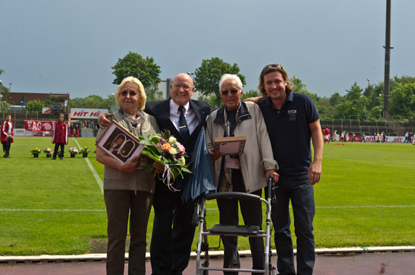 Das letzte Saisonspiel ist häufig Zeit zum Abschiednehmen. Und so war es auch vor dem Heimspiel gegen Westfalia Herne. Neben Trainer und Spielern verabschiedete und bedankte sich die Fortuna bei Anneliese und Herbert Prinz, die unglaubliche 35 Jahre für den Ticketverkauf rund ums Südstadion verantwortlich waren. Klaus Ulonska und Dirk Daniel Stoeveken überreichten zu diesem Anlass nicht nur Blumen und ein Abschiedsgeschenk, sondern auch zwei Dauerkarten für die nächsten 35 Jahre. Die Familie Prinz bleibt der Fortuna aber auch an den Kartenverkaufsstellen erhalten, denn die Tochter wird ihre Eltern dort in Zukunft vertreten.