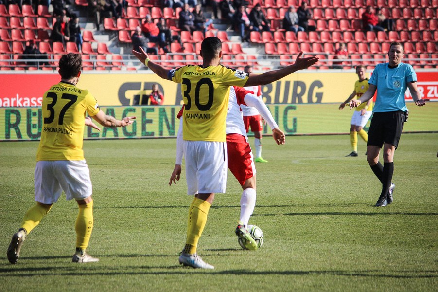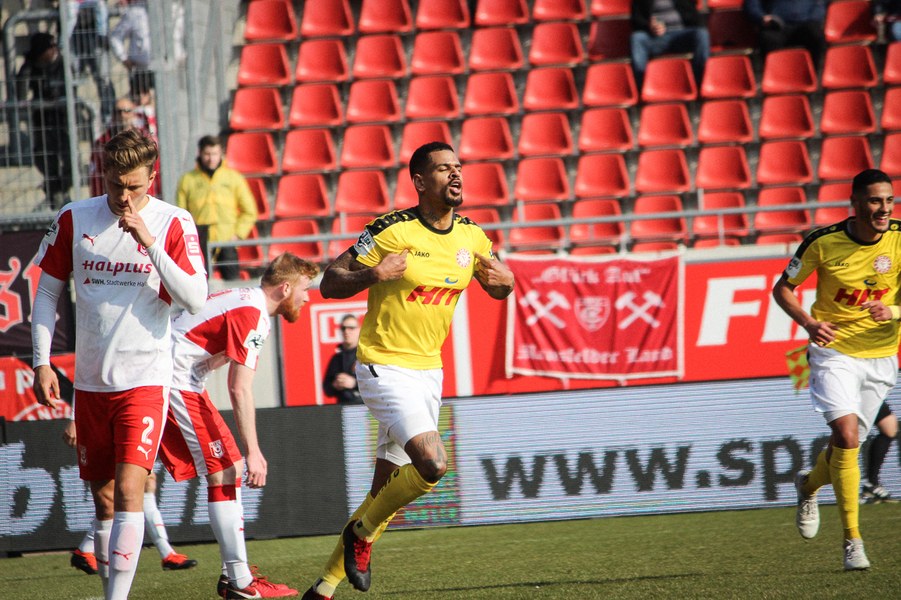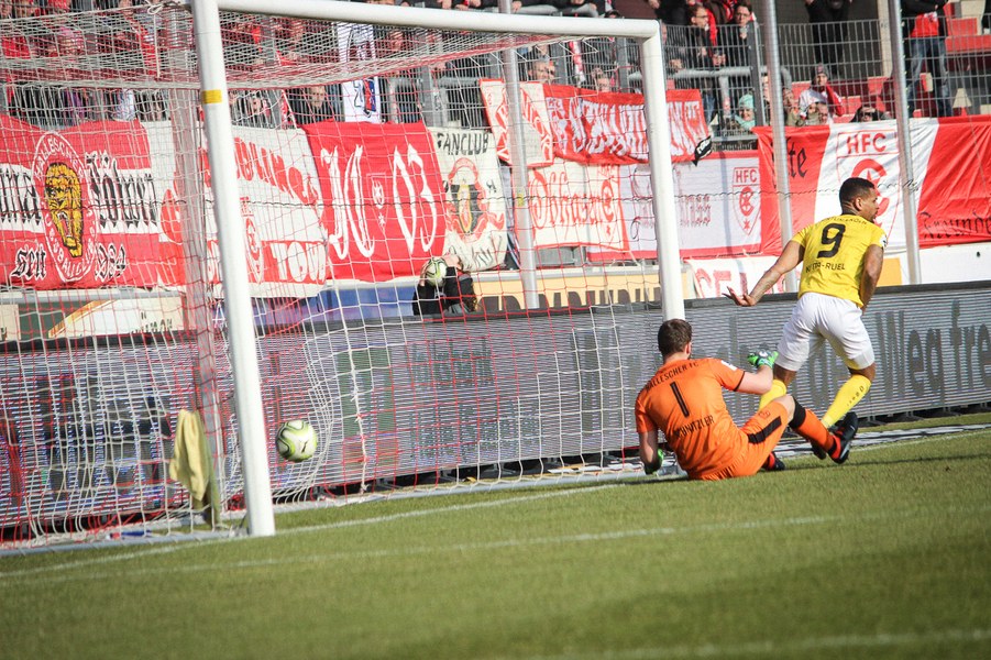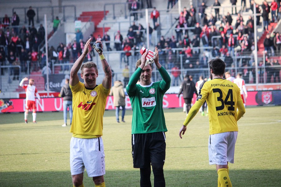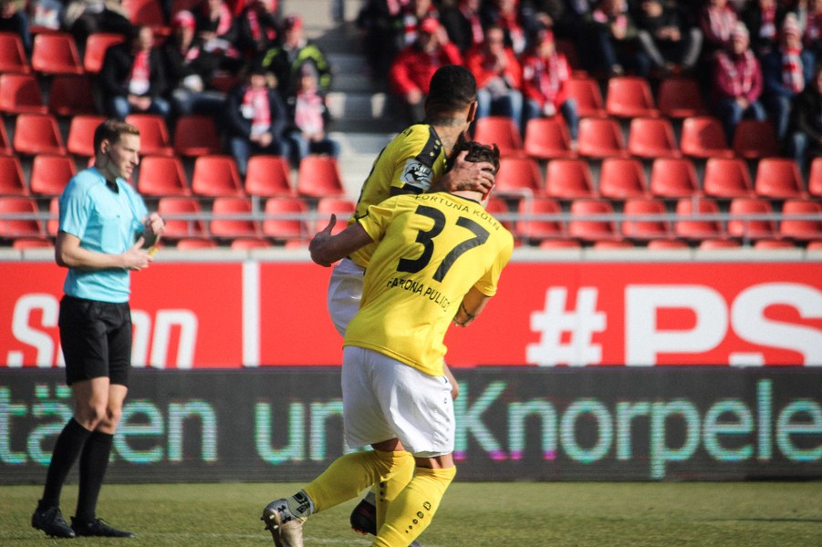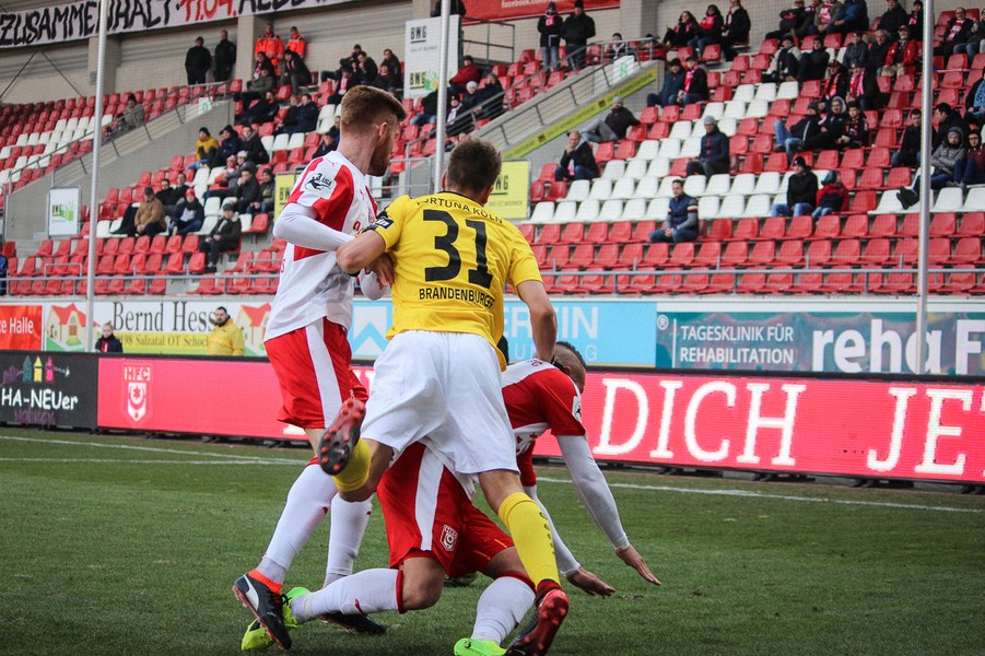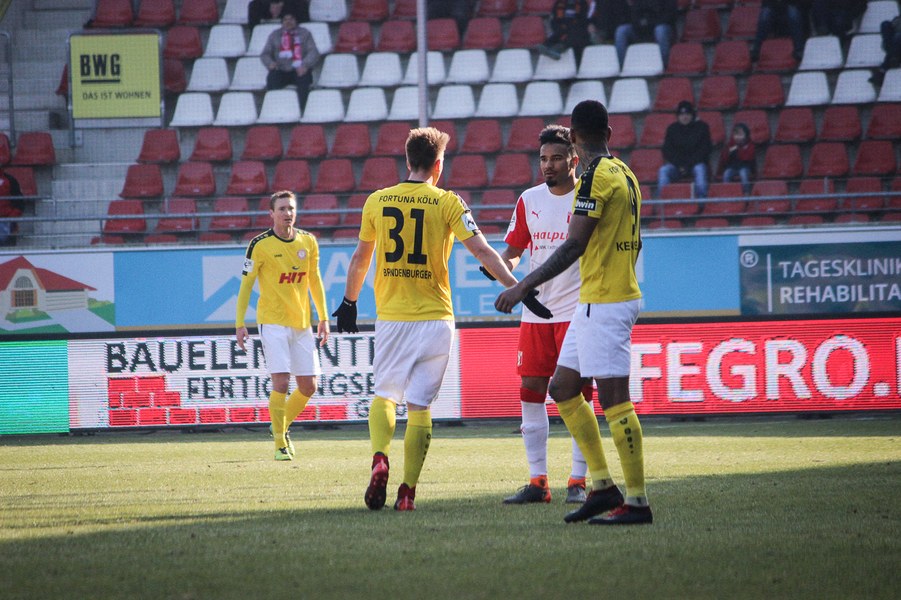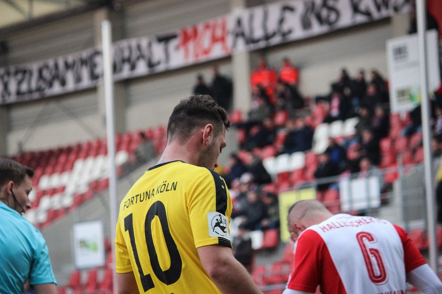 In der 2. Halbzeit erwischte die Fortuna ebenfalls einen guten Start, zeigte sich dieses Mal aber kaltschnäuziger. Nach einem Kegel-Freistoß konnte sich Brandenburger den Abpraller sichern und schob humorlos zum 2:0 ein (56.). Das schnelle 2:0 der Kölner zog dem Erdgas-Sportpark den Stecker, auch wenn die Fortuna danach Glück: Baumgärtel wurde nach einem Eckball alleine gelassen. Der Hallenser verzog allerdings und sein Schuss ging knapp am Pfosten vorbei (63.). Auch danach drückte der HFC auf den Anschlusstreffer. Boss warf sich mit vollen Risiko in eine Fetsch-Hereingabe (66.). Die Fortuna ließ sich nicht beeinducken und suchte die Entscheidung. Nach einem Brandenburger-Zuspiel verpasste Dahmani den Abschluss und die Hallenser konnten die Situation klären (74.). Kurz darauf entschieden die Südstädter aber die Partie! Nach einem Konter marschierte Menz mit nach vorne und schob nach Zuspiel von Keita-Ruel einskalt zum 3:0 ein (76.) Der HFC probierten zwar noch den Ehrentreffer zu erzielen, aber die Defensive der Fortuna stand sicher. Schließlich hatte die Fortuna noch die Chance auf ein weiteres Tor, aber Dahmani konnte den Ball nicht an Schnitzler vorbei bringen (89.). Am Ende feierten die Kölner den ersten Auswärtssieg seit September letzten Jahres und rückt ganz dicht an die Aufstiegsplätze heran.