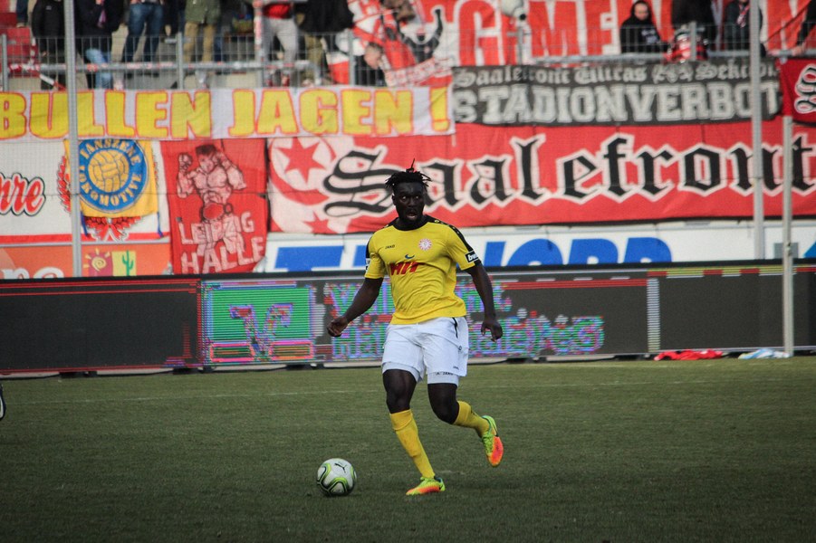 Nach zwei Siegen in Folge ging die Fortuna mit einer breiten Brust in die Partie beim angeschlagenen Halleschen FC. Dabei gelang den Kölnern fast ein Traumstart: Nach 25 Sekunden lief Keita-Ruel alleine auf Oliver Schnitzler zu. Der Torhüter machte sich aber groß und konnte den frühen Rückstand verhindern (1.). Ein paar Minuten später war es erneut Keita-Ruel: Nach einem Pass von Kegel konnte er den Ball an Schnitzler vorbei ins Tor lupfen. Der Schiedsrichter entschied allerdings auf Abseits (8.). Danach fanden auch die Gastgeber besser ins Spiel. Vor allem über die rechte Seite mit dem auffälligen Ajani drückte man die Fortuna in die eigene Hälfte. Torchancen konnten sie sich jedoch noch nicht heraus spielen. In diese Phase fiel dann die Führung der Fortuna: Kegel schickte Ernst mit einem langen Ball tief in die gegnerische Hälfte. Dort legte er den Ball in den Strafraum zu Keita-Ruel, der durch die Beine von Schnitzler köpfte (21.). Halle ließ sich vom Rückstand aber nicht beeindrucken und entwickelte mehr Zug zum Tor. Kurz nach der Kölner Führung verpasste Gjasula eine Ajani-Hereingabe nur knapp (23.). Es entwickelte sich daraufhin eine ausgeglichene Partie, in der sich der HFC aber ein optisches Übergewicht erspielte vor allem über die Außen Gefahr aufbaute. Lindenhahn und Gjasula kamen so zu aussichtsreichen Möglichkeiten (28./33.). Die größte Chance verbuchte El-Helwe, der seinen Meister aber in Boss fand (42.). Die Fortuna fand sich vornehmlich in der Defensive wieder und schaffte nur mit einem Distanzschuss von Pulido mal Entlastung (45.). Es blieb aber bei der Pausenführung.
