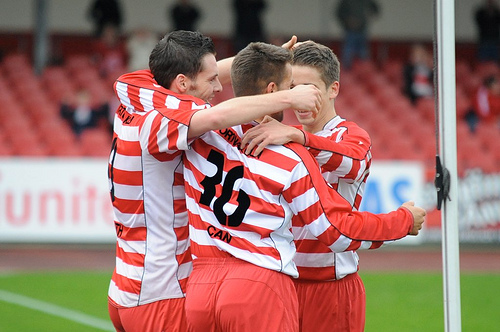(Gleich 34mal hatten die Spieler der Fortuna, in der Hinrunde der NRW-Liga-Saison 2009/2010, Gelegenheit zu jubeln. Foto: B.Lehmann)
