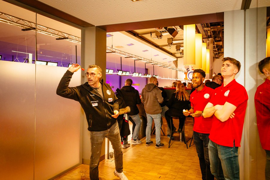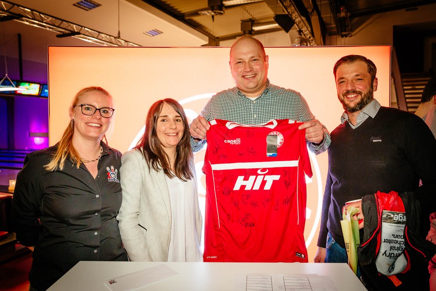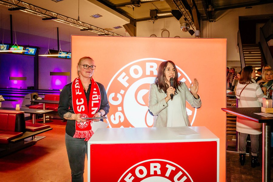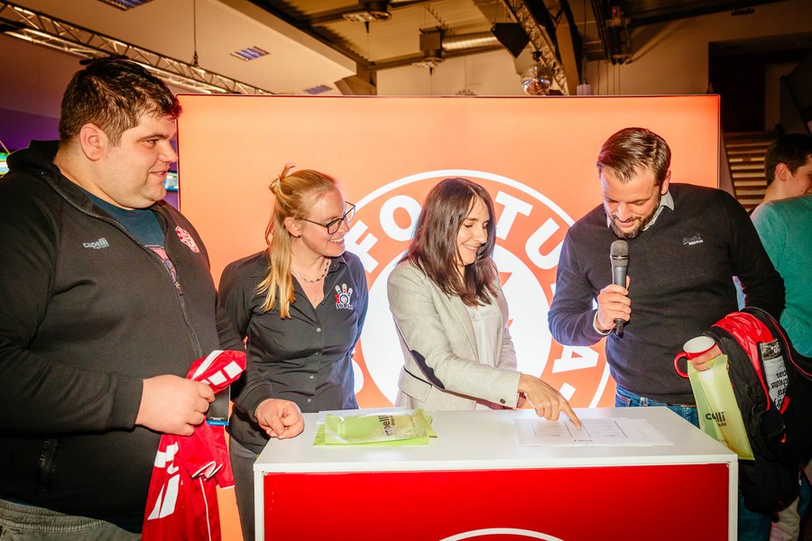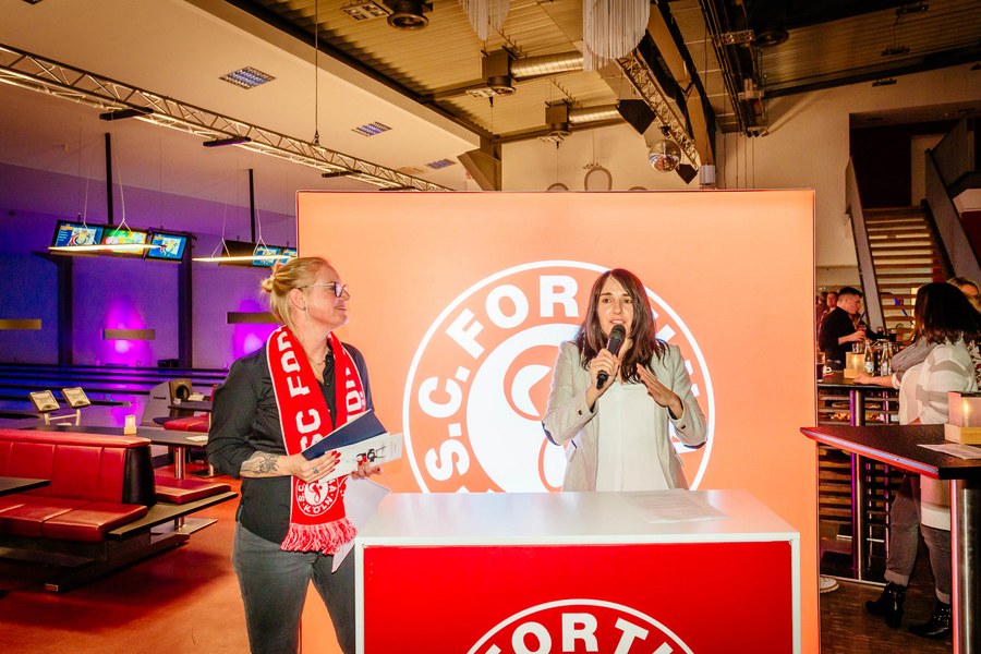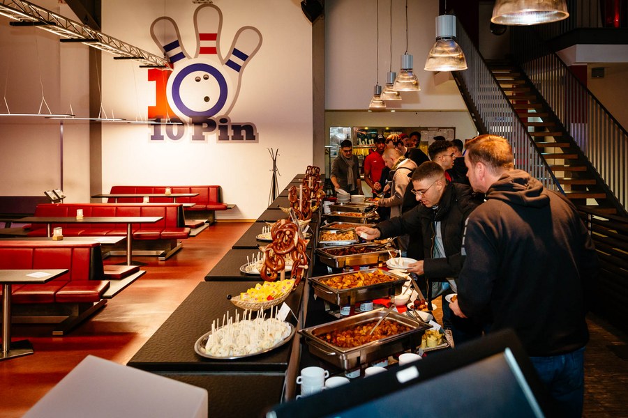 Nachdem sich die Anwesenden am leckeren Fingerfood-Buffet gestärkt hatten, begrüßte Nathalie Spieß, Assistenz der Geschäftsführung bei Fortuna Köln, zuerst die Gäste. Darüber hinaus bedankte sie sich beim Fortuna-Partner 10Pin Bowling & Event um Marion Zahn für die Ausrichtung des Abends und die großartige Kooperation. Anschließend ging es dann auf die Bowlingbahnen, auf denen Partner und Spieler gemeinsam versuchten, in zwei Spielrunden mit Strikes und Spares aufzuwarten. Auf insgesamt 18 modernen Brunswick-Bowlingbahnen war Spaß und Spannung garantiert. Dabei standen weniger die abgeräumten Bowlingpins im Vordergrund, sondern eher der Small Talk und der Spaßfaktor.