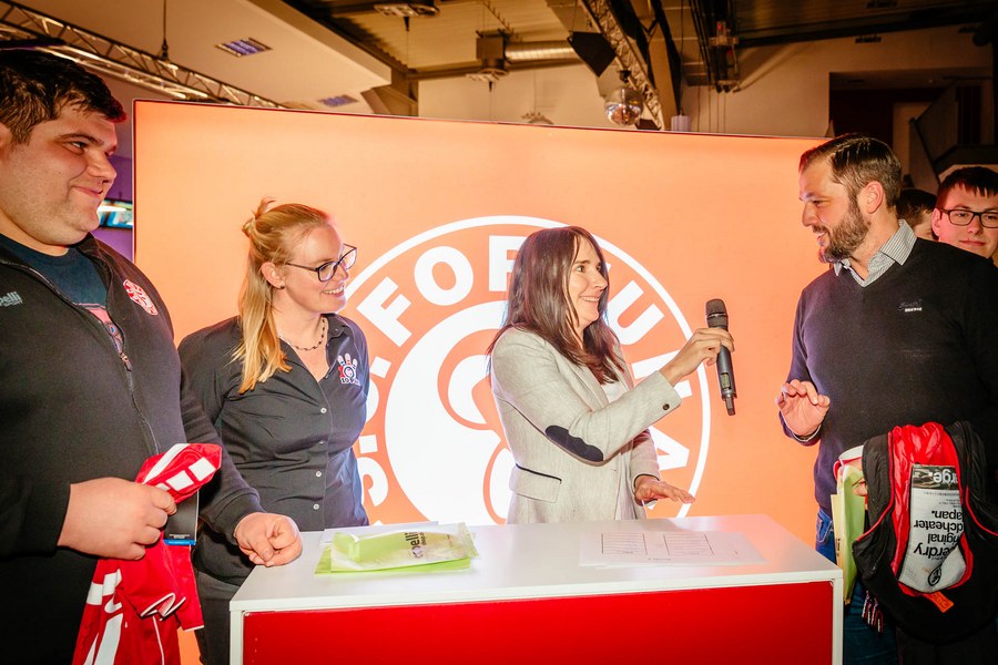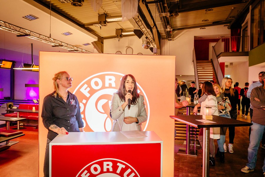 „Das war ein toller Abend. Wir haben uns sehr gefreut, der Mannschaft und den Fortuna-Partnern erneut unsere Räumlichkeiten zu präsentieren“, resümierte 10Pin-Beriebsleiterin Marion Zahn mit fröhlichem Gesicht. Und diese haben es in sich. Schließlich hat das 10Pin neben den Bowlingbahnen auch Billardtische, Dartautomaten, Airhockey-Tische, Kegelbahnen, Tenniscourts und vieles mehr zu bieten. Marion Zahn betonte besonders die neu eröffneten Indoor Soccer Plätzen, mit dem Verweis auf das nächste Event am Dienstag, den 24. März 2020 - dem 1. 10Pin-Cup der Fortuna.