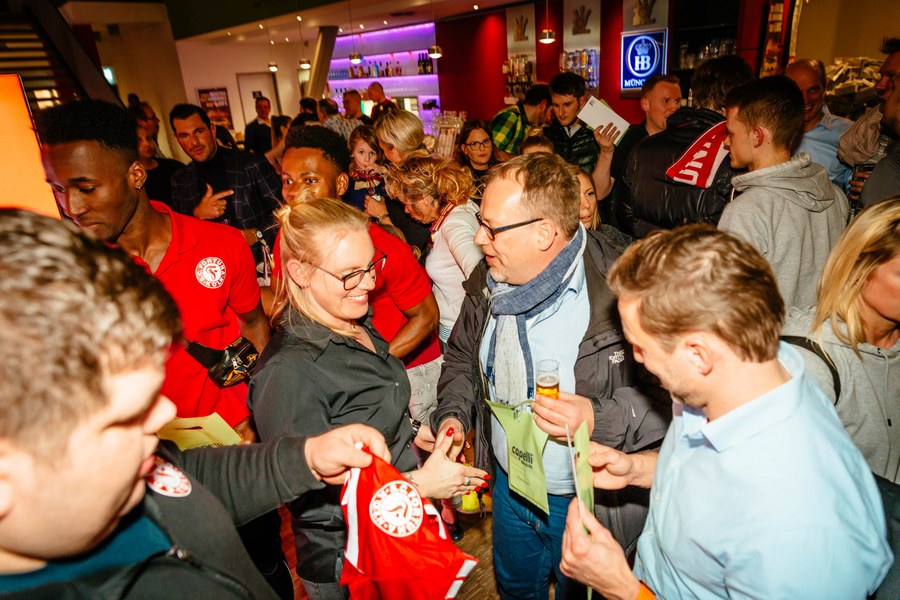 Eine runde Sache – so lässt sich der Bowling-Abend der Fortuna wohl am besten beschreiben. Etwa 150 Gäste aus dem Fortuna-Netzwerk und die komplette Profi-Mannschaft trafen sich am Dienstagabend zum gemeinsamen Bowlen.