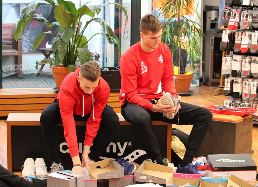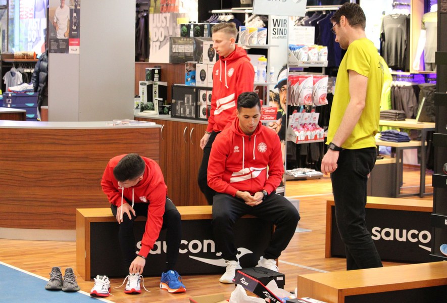 Ob Trainer Tomasz Kaczmarek oder die Spieler Bernard Kyere, Ali Ceylan, Nico Ochojski, Okan Kurt, Alem Koljic, Moritz Fritz und Benjamin Pintol – alle nahmen gerne die umfangreiche Beratung in Anspruch, die bei Bunert bei jedem Besucher dazugehört. Und selbstverständlich wurden die Laufschuhe von Saucony auch gleich ausprobiert. Dazu gab es in den 350 Quadratmeter großen Räumlichkeiten reichlich Gelegenheit.