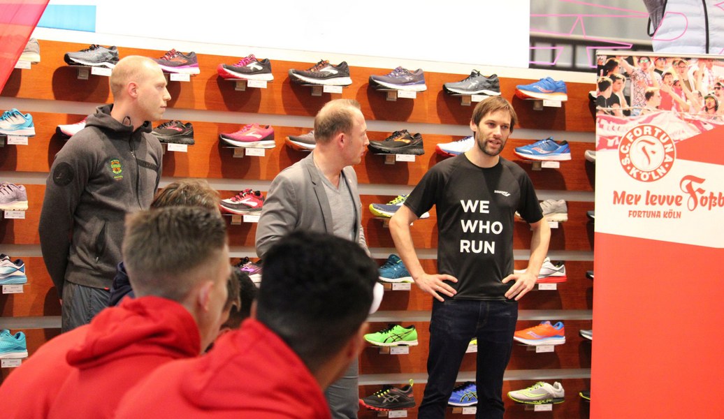 „Der Besuch ist bei unseren Spielern und dem Trainer sehr gut angekommen“, berichtet Benjamin Bruns, Mitglied der Geschäftsleitung bei Fortuna Köln. „Fußballer absolvieren zahlreiche Läufe, um die Ausdauer zu verbessern. Da gehören professionelle Laufschuhe einfach dazu.“ Fortuna-Coach Kaczmarek ergänzt: „Gerade in der Vorbereitung sind besonders viele Laufeinheiten dabei. Aber auch, wenn die Spieler individuell trainieren, gehen sie laufen. Dazu gibt es spezielle Trainingsblöcke, in denen Läufe eine wichtige Rolle spielen.“