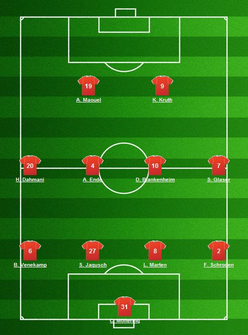 Die Mitglieder von deinfussballclub.de halten Abdelkader Maouel für einen geeigneten Ersatz für den rotgesperrten Cengiz Can. Im übrigen musste Michael Khan gestern das Training abbrechen, er hat sich offenbar eine Verletzung am Inneband zugezogen. Für ihn rutscht, zum ersten Mal seit fast 9 Monaten, Ioannis Foukis bei einem Pflichtspiel in den Kader. Wen Matthias Mink zum Spiel gegen Westfalia Herne aufs Feld schickt, erfahrt Ihr im DFC-Chat um 13 Uhr.