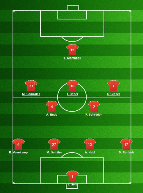 Die Co-Trainer von deinfussballclub.de haben sich für die 4-2-3-1-Taktik entschieden. Mit diesem System soll heute abend bei den Sportfreunden aus Siegen gepunktet werden. Gegenüber der Startaufstellung des letzten Spiels schlagen sie eine Änderung vor: Benjamin Venekamp soll den Startplatz von Chamdin Said übernehmen. Was Trainer Matthias Mink plant, erfahrt Ihr heute Abend ab 19:45 Uhr im Liveticker und der Liveübertragung des DFC.
