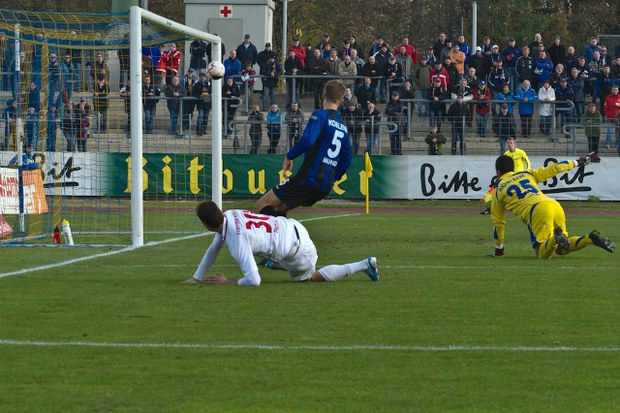 (Da war die Fortuna-Welt noch in Ordnung: Silvio Pagano erzielt aus spitzem Winkel die Führung, Foto: Gert König)