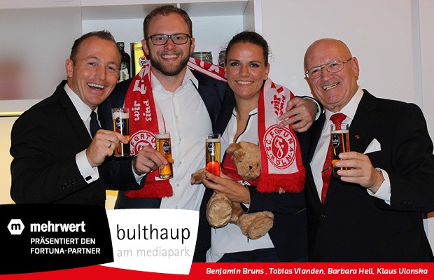 »Wir freuen uns, mit „bulthaup am Mediapark“ einen innovativen Partner dazugewonnen zu haben. Der Anspruch höchster Qualität und ein kreatives Planungsteam machen bulthaup zum absoluten Profi für Designer Küchen. Zudem bietet der Showroom den perfekten Rahmen für außergewöhnliche Events“, freut sich Benjamin Bruns, Leiter Sponsoring und Vertrieb Fortuna Köln, auf die gemeinsame Partnerschaft. Auch Tobias Vianden, Geschäftsführer „bulthaup am Mediapark“ sieht dem gemeinsamen Weg mit viel Vorfreude entgegen: „Wir hoffen auf viele spannende Spiele und ebensolche Begegnungen, drücken unsere Daumen für die Mannschaft und freuen uns, Sie in unserem Showroom begrüßen zu dürfen.“
