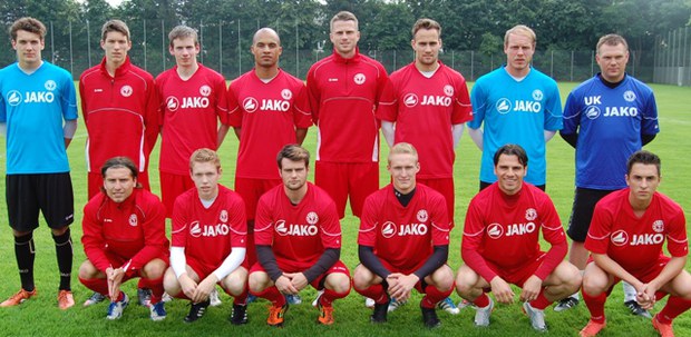 Trainer Uwe Koschinat bat heute zum ersten Training der Sommervorbereitung 2012/2013. Mit dabei waren natürlich auch alle Neuzugänge, die sich hier zum ersten gemeinsamen Foto zusammenfanden. Obere Reihe von links: Alexander Monath, Marko Stojanovic, Tobias Standop, Dominique Ndjeng, Daniel Flottmann, Sebastian Zinke, André Poggenburg, Trainer Uwe Koschinat. Vordere Reihe von links: Eric Schaaf, Lars Wessel, Jan-André Sievers, Thomas Kraus, Massimo Cannizzaro, Stipe Batarilo.
