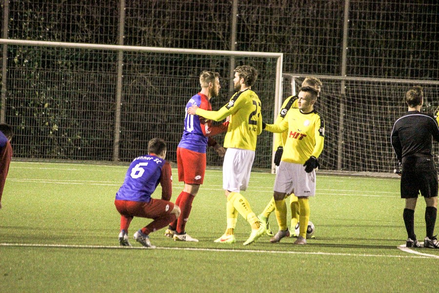 Die Fortuna versuchte gegen den Regionalligisten früh die Initiative zu übernehmen und mit Kombinationsspiel den Bonner SC zu dominieren. Der agierte jedoch clever und lauerte auf Kontersituationen. So erspielte sich der BSC ein leichtes Chancenplus. Spätestens nachdem Schuhmacher mit einer Flanke Lunga fand, der aus kurzer Distanz das Tor verfehlte, war man der Führung näher (17.). Der Fortuna fehlte die Genauigkeit in den letzten Aktionen. So blieben Offensivaktionen aus, bis Alibaz genug hatte: Der Kölner fasste sich an der Strafraumkante ein Herz und setzte den Ball sehenswert zum etwas überraschenden 1:0 in den Winkel (24.). Die Antwort von Bonn folgte aber auf dem Fuße und wie: Aus zentraler Position setzte Schumacher einen Freistoß unter die Latte (27.). Innerhalb von drei Minuten entschädigten zwei Traumtore für frische Temperaturen. Der Bonner SC nahm den Schwung vom schnellen Ausgleich direkt mit und blieb weiter gefälliger. Torchancen blieben nun aber aus, weil sich viel zwischen den Strafräumen abspielte. Die Fortuna tat sich weiter schwer. Es fehlte die letzte Durchschlagskraft. Einzig Alibaz sorgte vor der Pause noch einmal für Torgefahr (37.). Bonn wollte mehr als nur das 1:1. Trotzdem ging es mit dem Remis in die Kabine.