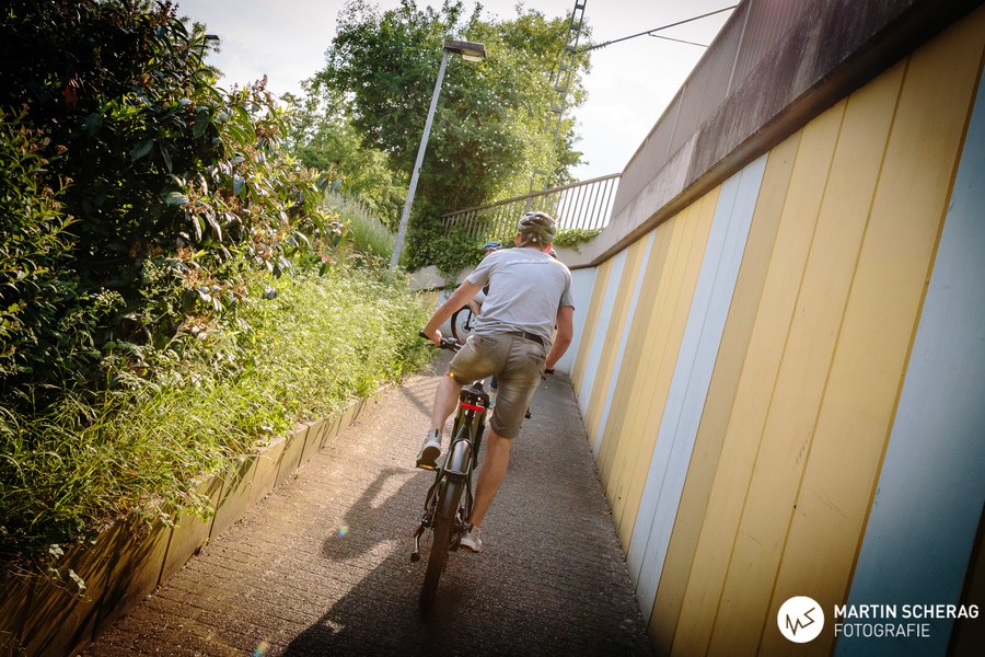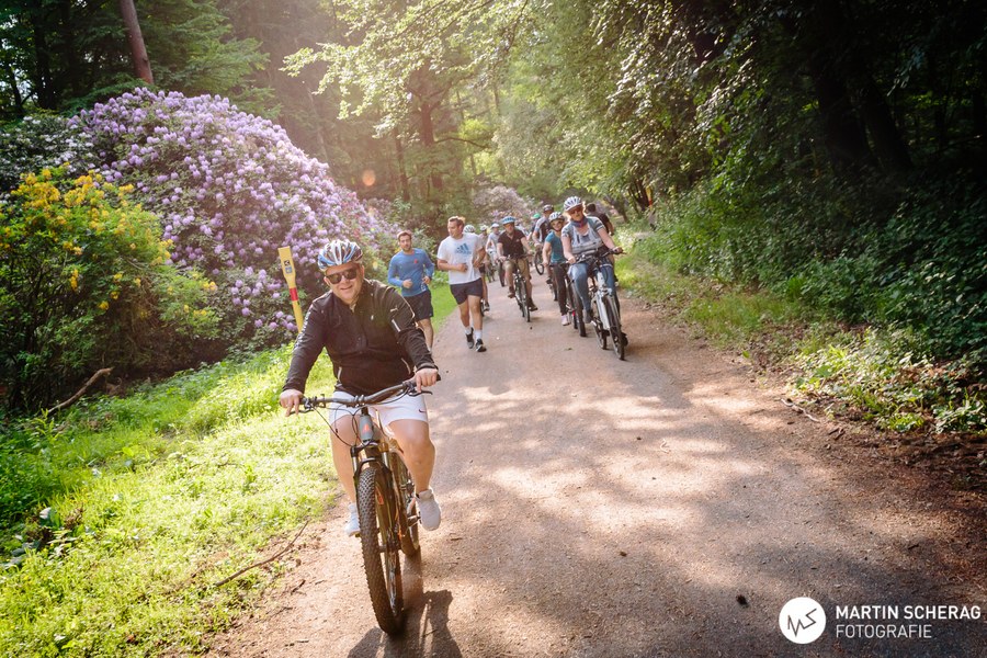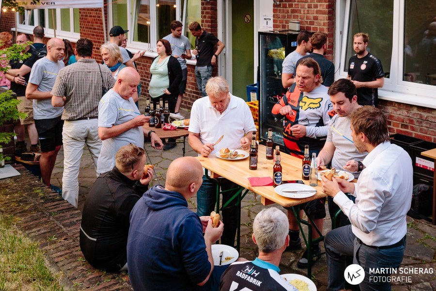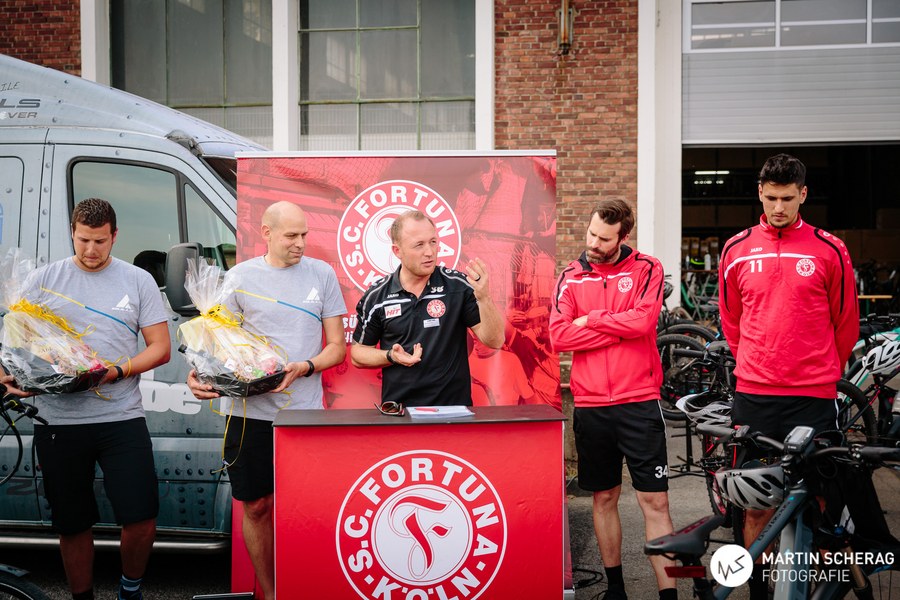 Das Partner-Event der Fortuna war wieder gut besucht: Die insgesamt 38 Personen der 30 teilnehmenden Partnerunternehmen wurden durch die Fahrräder und Materialien des Zweirad-Center Prumbaum und der eurorad Deutschland GmbH in Köln-Dellbrück bestens für die anstehenden Routen ausgestattet. Der sportliche Nachmittag begann um 17:30 Uhr indem Benjamin Bruns, Leiter Sponsoring und Vertrieb bei Fortuna Köln, die anwesenden Vertreter der jeweiligen Partnerunternehmen begrüßte. Im Anschluss daran ging es auf den Sattel und die Teilnehmer teilten sich in zwei Gruppen auf. Wer wollte, konnte sich der Gruppe um Andersen und Falahen anschließen und sich der anspruchsvolleren Sport-Tour stellen, die durch hügeliges Terrain verlief. Als Alternative gab es die nicht weniger schöne Genießer-Route, bei der es etwas entspannter zuging. Gegen 20:30 Uhr fanden sich alle Radfahrer wieder auf dem Gelände des Zweirad-Center Prumbaum ein. Erholung gab es in Form von kühlen Getränken und leckerem Grillfleisch. Neben dem Sportlichen stand am Abend dann vor allem der gemeinsame Austausch im Vordergrund, durch den sich das Fortuna-Netzwerk noch enger verflechten konnte. Gegen 23 Uhr klang der Abend dann allmählich aus.