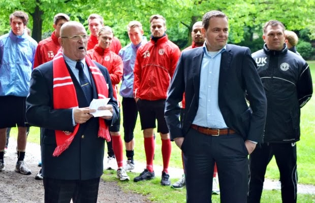 Am heutigen Donnerstag wurde die „Fortuna-Bank“ im Volksgarten zeremoniell eingeweiht. „Es erfüllt uns mit Stolz und wir freuen uns als Südstadt-Verein nun eine eigene Bank im Volksgarten zu haben“, freute sich Fortuna-Präsident Klaus Ulonska. Federführend übernahm Oberbürgermeister Jürgen Roters die Einweihung der Bank. Auch Paul Bauwens Adenauer und Beatrice Bülter von der Kölner Grünstiftung sowie Michael W. Schwetje (Beiratsvorsitzender Fortuna Köln Spielbetriebsgesellschaft mbH) und die gesamte 1. Herrenfußballmannschaft der Fortuna um Cheftrainer Uwe Koschinat waren bei diesem Termin anwesend.