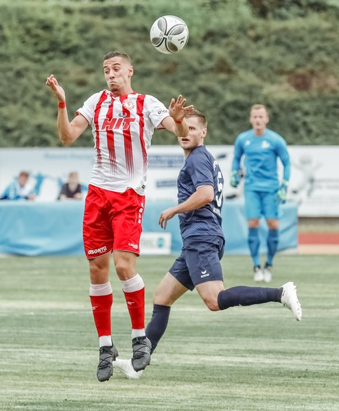 Die Gastgeber starteten mit einem frühen Pressing und setzten so die Fortuna Defensive frühzeitig unter Druck. Eine erste Torannäherung für die Fortuna erfolgte durch den Schuss von Sascha Marquet (7.Min) In der 11. Minute gelang den Südstädtern dann der Führungstreffer. Ein Einwurf auf Höhe der Eckfahne von Dan-Patrick Poggenberg segelte durch den Strafraum der Siegburger und Mike Owusu drückte den Ball über die Linie. Die Siegburger ließen sich von der Führung nicht beirren und spielten weiter mutig nach vorne. Nach einer guten Viertelstunde waren die rot-weißen im Glück. Über die rechte Angriff Seite der Hausherren kam der Ball flach in den Fortuna Sechzehner. Auf Höhe des Elfmeterpunktes kam ein Siegburger Angreifer im Duell gegen Pascal Itter zu Fall und forderte einen Elfmeter. Der Pfiff blieb jedoch aus. Doch damit war die Situation nicht erledigt. Aus dem Rückraum kam ein weiterer Siegburger an den Ball und zum Schuss. Aufgrund verdeckter Sicht wäre der Fortuna Schlussmann Felix Buer machtlos gewesen, hatte jedoch Glück und der Ball landete am rechten Pfosten. Einige Minuten später schickte Brandenburger den in Richtung Tor startenden Najar mit einem Steilpass, welcher den Torhüter mit einer Ballrolle aussteigen ließ und den Ball zum 2:0 im Siegburger Tor versenkte (25.Min). Die Fortuna schnürte die Gäste immer weiter in ihrer Hälfte ein und ließ den Siegburgern nur wenig Platz für eigene Angriffe. Dies war auch der hoch aufrückenden Hintermannschaft der Fortuna zuzuschreiben. Das Aufrücken brachte jedoch auch Risiken mit sich, da die Siegburger mit schnellen Kontern, insbesondere nach gegnerischen Ecken für einzelne Ausrufezeichen sorgten, die jedoch wie in der 28. Minute geklärt werden konnten. Nach 30 Minuten hatte Sascha Marquet die Möglichkeit auf 3:0 zu erhöhen, doch der Ball versprang ihm und landete über dem Kasten des Siegburger Schlussmannes. Mit dem 2:0 ging es auch in die Pause, in der Alexander Ende fünf Mal wechselte. Harnafi, Demaj, Ubabuike, Nadjombe und Fünger ersetzten Najar, Batarilo, Lanius, Marquet und Kegel.