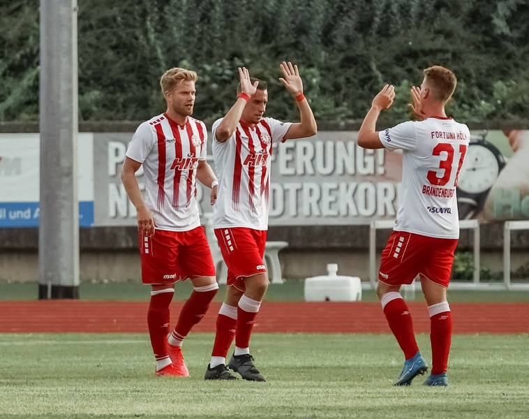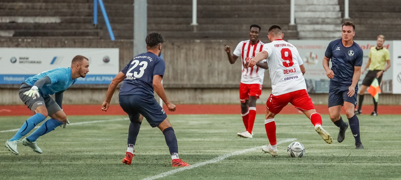 Über den eingewechselten Leon Demaj kam es in der 50. Minute zur nächsten Chance der Gäste. Über den linken Flügel spielte Demaj den Ball auf Harnafi, welcher in letzter Instanz vom gegnerischen Innenverteidiger gestört wurde und so nur eine Ecke herausholte. Nach 59 Minuten setzte Harnafi Owusu per Heber in Szene, der freistehend vor dem Gästekeeper quer auf Leon Demaj legte. Kurz darauf war es Harnafi selbst der den Ball nach Vorarbeit von Owusu im langen Eck zum nächsten Treffer unterbrachte (62.Min). Nur wenige Minuten später erzielten die Südstädter den fünften Treffer des Tages. Brandenburger setzte zu einem Sprint an und drang in den Sechzehner ein, wo er uneigennützig quer auf Harnafi ablegte, der somit seinen Doppelpack schnürte (66.Min). Fortan legte die Fortuna einen Gang zurück und spielte sich nicht mehr zwingend vor das gegnerische Tor. Dies hatte zur Folge, dass in der 80. Minute der Gastgeber seinen Ehrentreffer erzielte. Fortuna Keeper Felix Buer konnte nach einem verdeckten Schuss des Siegburgers Jo, nur noch hinterherschauen (80.Min). Kurz vor Schluss musste der stark aufspielende Ismail Harnafi nach einem Schlag auf den Oberschenkel den Platz verlassen. Kurz danach beendete Schiedsrichter Damar die Partie und das Spiel endete mit 1:5.