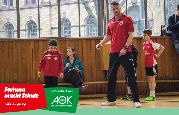 Am Donnerstag stand für die Koschinat-Elf die nächste Schulaktion auf dem Plan: Unter dem Motto "Fortuna macht Schule" gaben Flottmann, Kessel und Stojanovic in der katholischen Grundschule Zugweg Fußballtraining. Anschließend konnten die Schüler den drei Fortunen Fragen stellen und sich Autogramme holen.