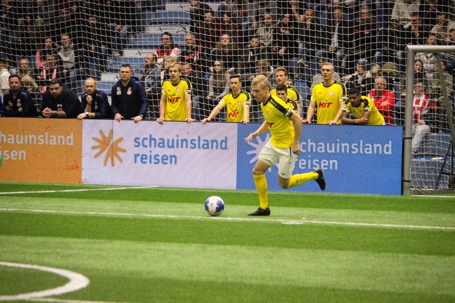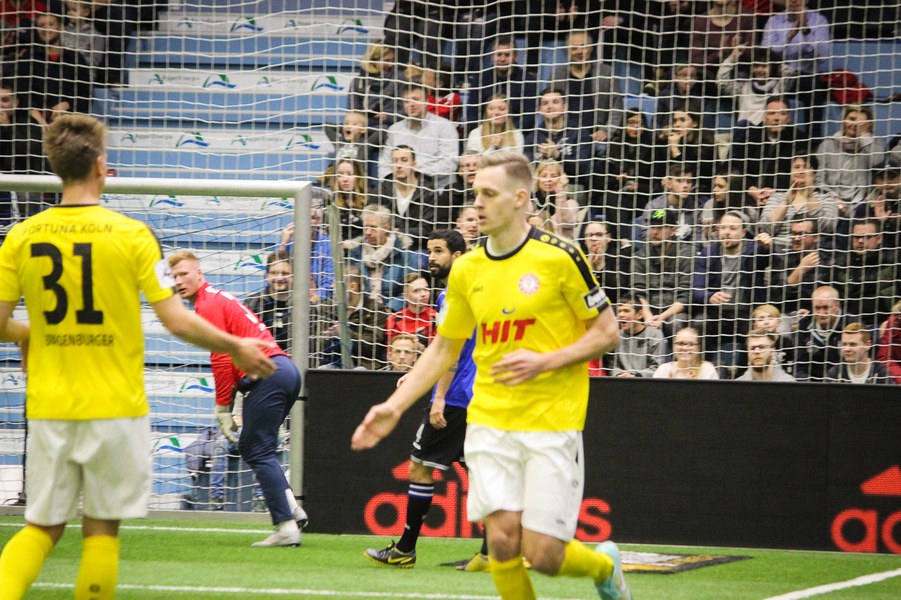 Zum Abschluss der Gruppenphase mussten die Kölner dann gegen den 1. FC Kaan Marienborn ran. Dabei ging der Oberligist durch Gencal in Fürung. Die Fortuna hatte aber ein klares Chancenplus und schaffte durch Keita-Ruel den verdienten Ausgleich. Im zweiten Abschnitt gingen die Kölner dann sehenswert in Front, als Remagen eine Flanke von Keita-Ruel per Volley im Tor unter brachte. Marienborns Wermes schaffte zwar postwendend den Ausgleich. Die Fortuna ging durch einen Kopfball von Keita-Ruel aber erneut in Front. Kurt und Eichhorn erhöhten anschließend auf 5:2 für dominierende Kölner. Brato legte schließlich seinen ganzen Frust in einen Gealtschuss, der unhaltbar für Bruhns einschlug. Remagen markierte mit etwas Glück in der letzten Minute aber den 6:3-Endstand, womit die Fortuna ins Halbfinale einzog.
