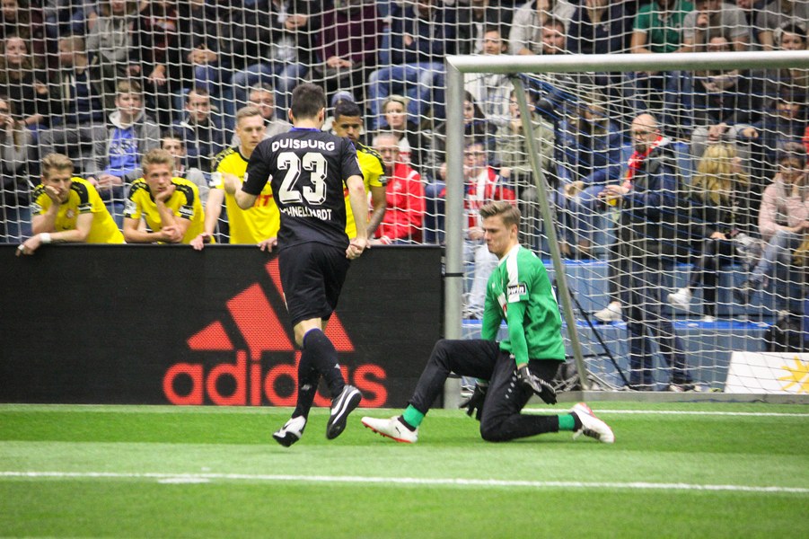 Dort traf die Fortuna auf den Sieger des Vorjahres, den MSV Duisburg. Es war ein Spiel auf Augenhöhe, in dem es Chancen auf beiden Seiten gab. Während die Fortuna am gegnerischen Torwart verzweifelte, zeigten sich die Zebras eiskalt. Christian Gartner stürmte in Richtung Tor und ließ Bruhns im Tor der Fortuna keine Chance. Kurz nach der Pause war es dann wieder Gartner: Nach einem Abpraller kam er frei vom Tor an den Ball und musste nur noch einschieben. Die Fortuna gab sich aber nicht auf und kam durch Kessel zum Anschluss: Aus halbrechter Position zog er direkt ab und ließ dem Duisburger Torhüter keine Chance. Erneut Kessel sorgte nur wenig später mit einem abgefälschten Schuss für den Ausgleich. Es gab noch weitere Chancen im Spiel aber keine der beiden Mannschaften konnte diese nutzen. So musste das Neunmeterschießen herhalten für die Entscheidung: Dort setzte sich der MSV Duisburg durch.