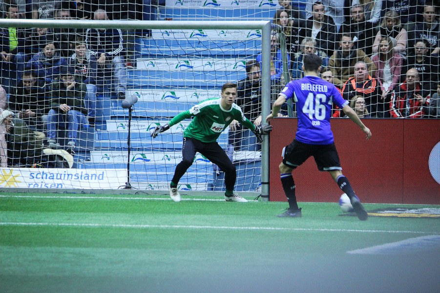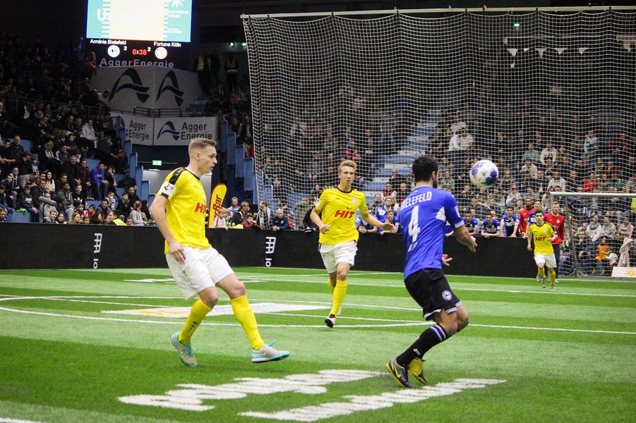 Im 1. Spiel traf die Fortuna auf den Zweitligisten aus Bielefeld. Nils Remagen brachte die Südstädter mit einem Gewaltschuss in Führung. Die Arminia drückte danach und konnte zwischenzeitlich sogar mit 2:1 in Führung gehen. Remagen war es dann, der nach der Vorarbeit von Cimo Röcker, den Ausgleich für die Kölner erzielte. Als alles nach einer Punkteteilung aussah, erzielte Lars Bender mit der Schlusssirene den späten Siegtreffer für die Fortuna.