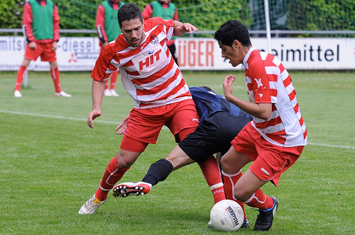 (Gemeinsam erkämpfen sich hier Tevfik Furucu und Hamdi Dahmani den Ball, Foto: B. Lehmann)