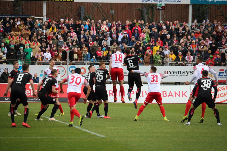 Karnevalssamstag, offene Südkurve, 8.379 Zuschauer und Traditionsverein Kaiserslautern zu Gast: Im Südstadion war alles angerichtet für das Fortuna Karnevalsspill. Trainer Tomasz Kaczmarek stellte seine Elf im Vergleich zum Auswärtsspiel bei Carl Zeiss Jena auf zwei Positionen um: Kristoffer Andersen ersetzte den Gelb gesperrten Maik Kegel und Boné Uaferro rückte zurück in die Dreier-Abwehrkette.