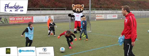 Mit Übungen zum Torschuss, zum Passspiel und zur Ballbehandlung schulten die Kinder des SV Lövenich/Widdersdorf mit den Fortuna-Profis ihre fußballerischen Fähigkeiten. Dabei gaben Biada, Engelman und Schröder hilfreiche Tipps und spielten selbst gegen die Kinder. Auch Fortuna-Panda Fred war engagiert bei der Trainingseinheit dabei und sorgte sowohl auf dem Feld, als auch im Tor für viel Spaß. Anschließend standen die Kölner Profis in einer Fragestunde dem Nachwuchs Rede und Antwort, ehe eine Autogrammstunde die Aktion abschloss.