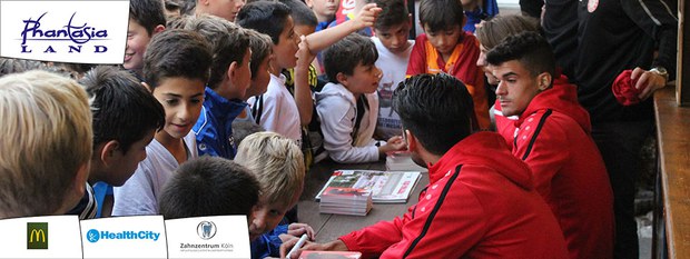 Bei der anschließenden Fragerunde und Autogrammstunde gewährten die Kicker den Kindern des FC Pesch einen kleinen Einblick in das Leben eines Profi-Fußballers.