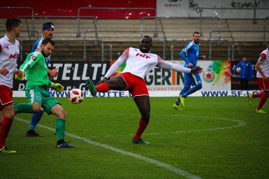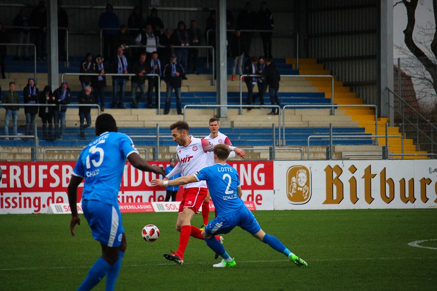 Lotte erwischte den besseren Start. Maximilian Oesterhelweg verfehlte mit seinem Flachschuss in der dritten Minute allerdings das Tor der Gäste. Durchatmen bei den Südstädtern dann vier Minuten später: Nikolai Rehnen hielt einen Schuss von Toni Jovic nicht fest. Aber selbst den Nachschuss aus kurzer Distanz – wenn auch aus einer Abseitsposition – parierte er.