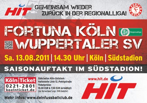 Es sind nur noch etwas mehr zwei Wochen bis zum Regionalligaauftakt im Südstadion. Zu Gast ist am 13. August (14:30 Uhr) der Wuppertaler SV, den viele Experten als einen der Favoriten auf den Aufstieg in die 3. Liga einschätzen. Um die Fortuna-Fans und die, die es vielleicht noch werden wollen, auf dieses Ereignis hinzuweisen, ist nun eine Plakat-Aktion - in Kooperation mit dem Partner HIT - gestartet worden. An vielen Stellen im Stadtgebiet ist die Fortuna ab heute wirklich unübersehbar.