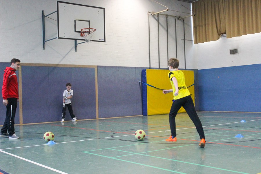 Die AOK-Schulaktionen gehören schon fast zur Routine für die Fortuna-Profis. Dabei ist der Spaß aber immer wieder aufs neue groß bei Kindern und Erwachsenen. Die drei Spieler von Fortuna Köln stellten an verschiedenen Stationen wieder einmal drei unterschiedliche Übungen vor, an denen sich die Schüler im Anschluss selbst probieren konnten. Nachdem Andersen, Bösing und Engelman die Kinder in zwei Gruppen durch den Morgen begleitet und zum Schwitzen gebracht haben, stand um 11 Uhr eine Begrüßung seitens der gesamten Schule auf dem Plan. Die Profis der Fortuna stellten sich den Fragen der wissbegierigen Schülern und verteilten im Anschluss Autogramme. Dabei ließen sich die Kinder nicht nur Autogramm-Karten beschriften, auch das Schuhwerk der Schüler wurde signiert.