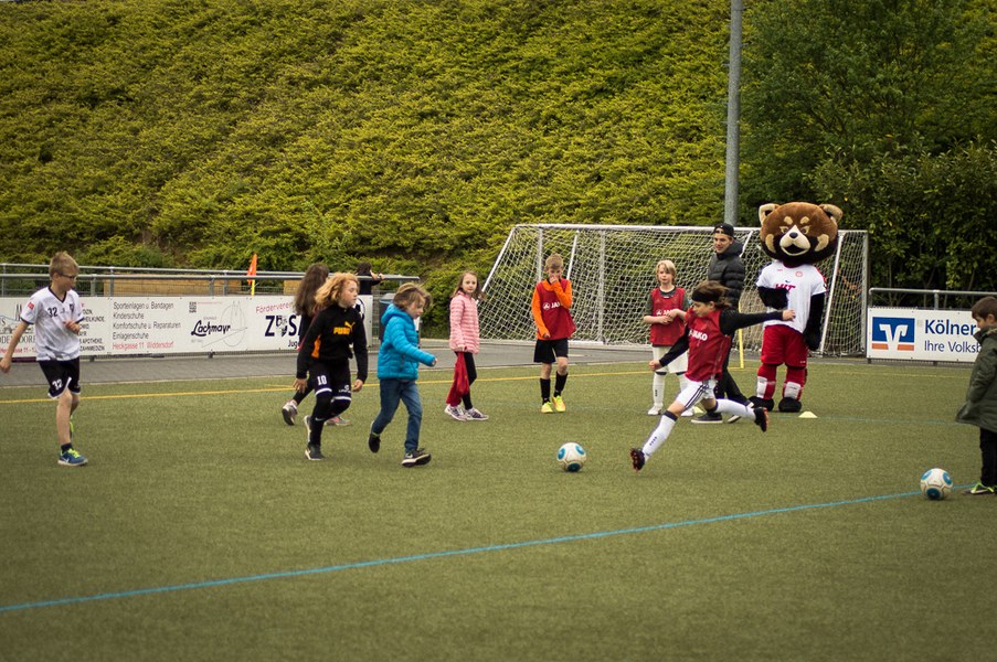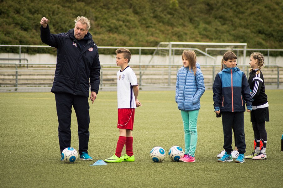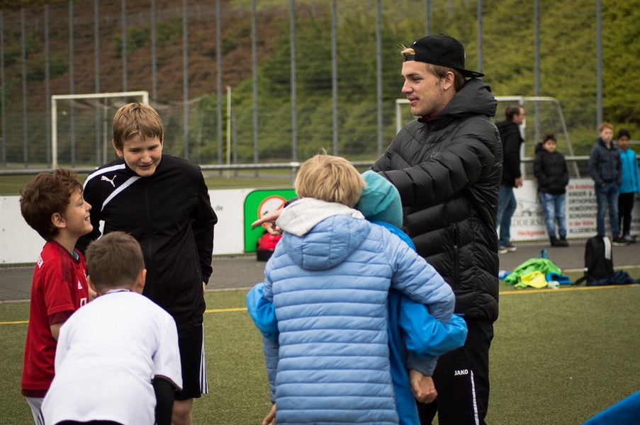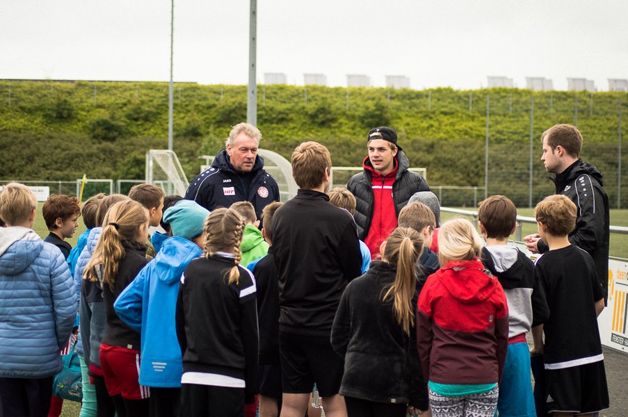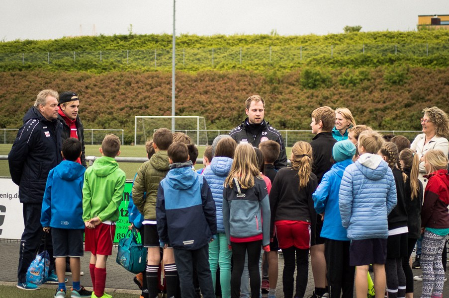 Nach dem Klassenerhalt am vergangenen Wochenende startete die neue Woche für Maurice Exslager, Cimo Röcker und Torwarttrainer "Toni" Hafkemeyer in der Olympia-Schule. 60 Schüler warteten da auch Training mit den Fortuna-Profis. Ein Programmpunkt waren dabei Torabschlüsse. Exlsager konnte den Kindern dabei die Perspektive eines Stürmers zeigen, während Torwarttrainer "Toni" Hafkemeyer besonders die jungen Keeper im Blick hatte. Daneben standen auch Zweikämpfe und Spielformen auf der Tagesordnung. Das Training fand dabei auf dem Gelände des SV LöWi statt, wo die Fortuna bereits eine Vereinsaktion absolvierte.