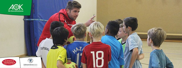 Torschuss, Dribbling, Flugkopfball und Fallrückzieher standen auf dem Trainingsplan, den die drei Fortunen Königs, Kessel und Kwame mit den Kindern absolvierten. Auch Maskottchen Fred stand den Kickern tatkräftig zur Seite und spielte mit den Kindern in der Turnhalle. Am Ende waren sich die Montessori Schüler in einer Sache einig: "Der Fallrückzieher macht am meisten Spaß!"