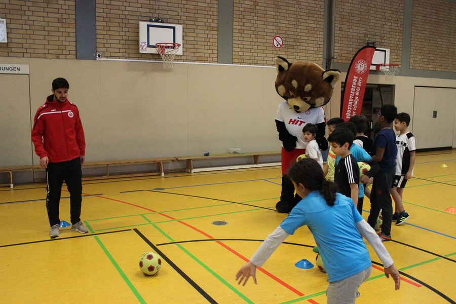 An der GGS Gotenring gehen 200 Kinder aus insgesamt 26 Nationen zur Schule. Serhat Koruk, Jannik Stoffels und Johannes Rahn trafen heute Morgen in Deutz ein, um hier mit den Schülern Fußball zu spielen und aus Ihrem Leben als Profisportler zu berichten. Sie schulten u.a. Torabschluss und Dribbling und gaben den Heranwachsenden einige Tipps mit auf den Weg. Nach dem schweißtreibenden Teil der Veranstaltung mussten sich die Profis wieder einigen Fragen stellen. Im Anschluss gab es neben Autogrammen und Postern auch Geschenktüten von Fortuna-Partner Schmitz und Nittenwilm für die Schüler. Am morgigen Tag stehen Koruk, Stoffels und Rahn wieder selbst auf dem Trainingsplan, wenn es in die unmittelbare Vorbereitung für das Pokal-Viertelfinale gegen Bergisch Gladbach 09 geht.