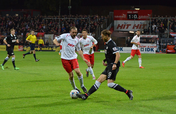 Nach einer starken Leistung gegen Preußen Münster punktet die Fortuna gegen das nächste Spitzenteam der 3. Liga. Am Ende steht ein 1:1 (1:0) gegen die Elf von Gäste-Trainer Ralf Loose. Dabei lag die Fortuna sogar lange auf der Siegerstraße und verpasste vielmehr eine vorzeitige Entscheidung. Dahmani gelang in einer dominanten Kölner Anfangsphase das frühe 1:0 für die Gastgeber: Nach einem Einwurf von Andersen markierte der Deutsch-Tunesier im Fallen seinen ersten Drittliga-Treffer (3.). Die Koschinat-Elf erarbeitete sich im ersten Abschnitt ein deutliches Chancenplus, verpasste es jedoch eine ihrer Möglichkeit zum nächsten Treffer zu nutzen. Nachdem Seitenwechsel bedeutete eine Volleyabnahme von Siegert, die am Pfosten landete, die Initialzündung für Münsters Offensive. Die Gäste kamen dabei vermehrt zu Abschlüssen aus dem Rückraum. Schließlich kippten zwei Konter über Rahn, die Münsters Schmidt regelwidrig stoppte, die Partie: Der Innenverteidiger der Gäste wurde innerhalb von zwei Minuten mit gelb-rot vom Platz geschickt. Anschließend verpasste es die Fortuna in Überzahl jedoch einen von mehreren aussichtsreichen Kontern zur Vorentscheidung zu nutzen. Die beste Möglichkeit hatte dabei Rahn, der am Pfosten scheiterte. Den Nachschuss von Aydogmus konnte schließlich Masuch parieren. So blieb es nur bei einer knappen Führung, die am Ende nicht zum Sieg reichen sollte: Nach einem feinen Zuspiel von Bischoff tauchte der eingewechselte Krohne frei vor Poggenborg auf und markierte sein fünftes Jokertor in dieser Saison zum 1:1-Endstand (88.).