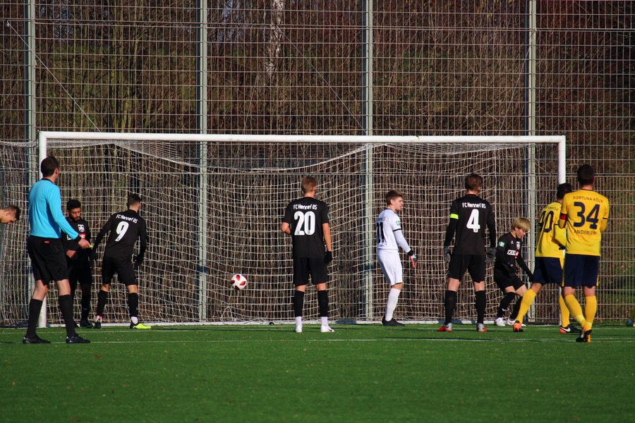 In der 19. Minute fiel dann das 1:0 für Fortuna: Hartmann verlängerte eine Ecke von links durch Koljic mit dem Kopf und Ochojski versenkte den Ball aus drei Metern im Tor.