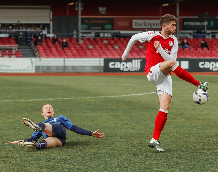 Die zweite Halbzeit knüpfte an die ersten 45 Minute an. Fortuna kontrollierte das Spiel weiterhin, bekam den letzten Pass aber nicht an den Mann. Es schlichen sich immer mehr individuelle Fehler in das Spiel der Fortuna, was die Gegner bis dahin aber nicht zu ihrem Vorteil nutzen konnten. Die Szene, die zum ersten Gegentreffer führte, ging auch von einer Unachtsamkeit aus: Rauhut ließ den Ball ins Toraus rollen, da er davon ausgegangen war, dass kein Kölner mehr am Ball war. Dem war aber nicht so, deshalb folgte ein Eckball für Wiedenbrück. Die hohe Hereingabe landete genau auf Pudel, der frei zum Kopfball kommt und in das Tor der Fortuna zur 1:0 Führung trifft (51.). Der Gegentreffer führte zunächst nicht dazu, dass die Fortuna aufhörte Fußball zu spielen. Trotzdem gelang es der Fortuna kaum noch in das letzte Drittel zu gelangen. So war es beispielsweise Salman, der zunächst durch ein schönes Dribbling seine Gegner stehen lässt, dann aber den entscheidenden Pass nicht an seinen Mitspieler bekommt und den Ball ins Toraus spielt (58.). Brenzlich wird es dann in der 62. Minute vor dem Wiedenbrücker Tor: Ochojski legte sich an der Eckfahne den Ball zurecht und brachte die Hereingabe auf Prokoph, der den Standard selbst rausgeholt hatte. Der Stürmer der Fortuna setzte den Kopfball nur ganz knapp am Tor vorbei. Nach dem Torabschluss verließ Salman das Feld und wurde durch Najar ersetzt (62.). Anschießend kam Wiedenbrück zu einer gefährlichen Aktion vor dem Kölner Tor. Beckhoff führte zwischen dem Sechzehner und der Seitenauslinie einen Freistoß aus, indem er ihn direkt aus spitzen Winkel auf den Kasten brachte. Rauhut war allerdings aufmerksam und flog rechtzeitig in die rechte Torecke, um den Ball abzuwehren (64.). Trainer Ende vollzog in der 65. Minute den dritten Wechsel und brachte Mittelfeldmann Kegel für Poggenberg. Fortuna bekam jetzt keinen Zugriff mehr auf das Spiel und es fehlten die zündenden Ideen im Offensivspiel. Der Ball wurde größtenteils hintenrum gespielt und fand kaum mehr den Weg nach vorne. In der 69. Minute war es erneut Beckhoff, der Rauhut zu einer herausragenden Rettungstat verleitete. Der durchgesteckte Pass auf Beckhoff konnte von Rauhut gerade noch vor dem heranlaufenden Stürmer weggeschlagen werden. Wiederholt ausgehend von einem individuellen Fehler resultierte das 2:0 für Wiedenbrück. Owusu verlor auf Höhe der Mittellinie den Ball an Beckhoff. Der schickte Tia, welcher das Spielgerät quer auf Tabaku legte. Tabaku beförderte den Ball eiskalt an Rauhut vorbei ins lange Eck (74.). Kurz darauf betrat Ubabuike für Brandenburger den Platz. Fortuna hatte weiterhin deutlich mehr Ballbesitz, bekam diesen aber nicht in gefährliche Situationen umgewälzt. Najar war es, der nach einer Flanke von Itter nochmals einen Abschluss auf den Kasten von Hölscher brachte. Sein Kopfball war aber nicht wuchtig genug und konnte somit problemlos vom Keeper gefangen werden (83.) In den letzten Minuten des Spiels war es gleich zweimal Rauhut, der schlimmeres verhindern konnte. Zunächst konnte Rauhut stark gegen Beckhoff klären (84.), kurz darauf parierte er stark gegen Torschütze Tabaku, der nach einem schweren Ballverlust von Försterling allein auf das Fortuna Tor zulief (86.). In der letzten Minute der Partie war es erneut Najar, der den Abschluss suchte, indem er den Ball auf den Kasten der Wiedenbrücker zirkelte. Da hatte nicht viel gefehlt, sein Schuss ging aber links am Pfosten vorbei. Kurz nach der Aktion pfiff Schiedsrichter Domnick die Partie ab und Fortuna musste sich im heimischen Südstadion gegen den SC Wiedenbrück geschlagen geben. Für Fortuna war dies außerdem die dritte Niederlage in Folge. Das nächste Spiel bestreitet die Fortuna nächste Woche Samstag, den 20.03.21, auswärts beim Bonner SC.