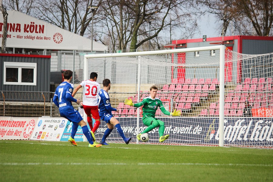 Fortuna Köln: Pazurek (20.), Theisen (48.), Kwame (53.), Flottmann (68.), Kessel (76.), Rahn (90.)