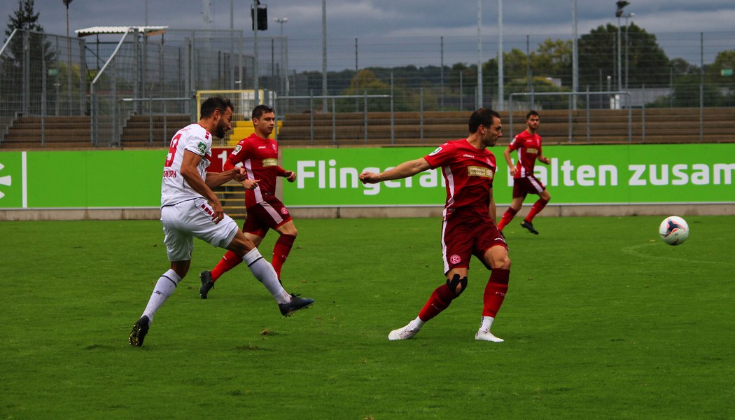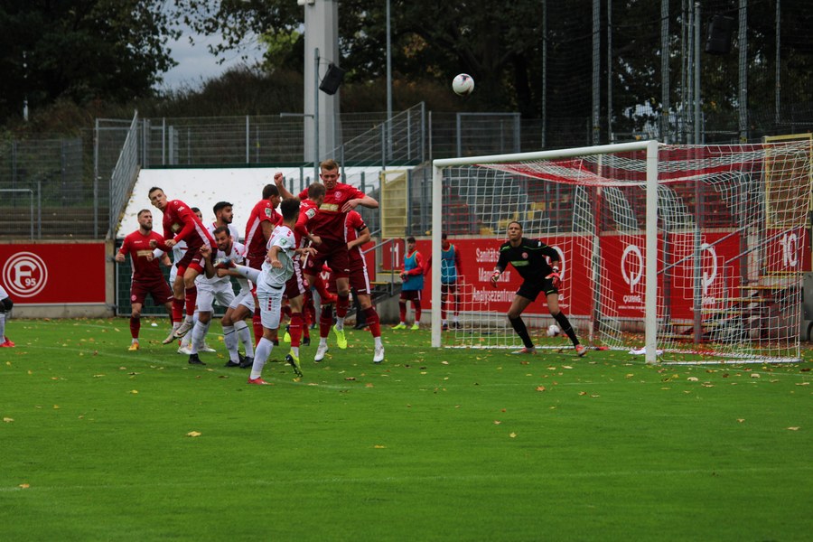 Wie auch schon in Gladbach kam Fortuna in Halbzeit zwei besser aus der Kabine und legte vor allem kämpferisch eine Schüppe oben drauf. Nico Ochojski eroberte am eigegen Sechzehner den Ball und machte sich auf die Reise. Kurz vor dem Kasten von Maduka Okoye nahm er Mike Owusu mit. Owusu steckte noch einmal auf Koljic durch, der eine Ecke rausholte (58.). Die Ecke selbst brachte keine Gefahr ein, der daraus entstandene Freistoß jedoch umso mehr. Aus gut 18 Metern zog Koljic den Ball direkt auf das Tor und Okoye musste blitzschnell abtauchen, um den Ball noch vor der Linie zu klären (59.). Auch Owusu blieb glücklos und verfehlte kurze Zeit später mit seinem Abschluss das Tor (65.). Fortuna kontrollierte das Spiel, blieb aber vor dem Tor nicht zwingend genug, um sich für den Aufwand zu belohnen. Und wie es dann im Fußball ist, kann es auch mal ganz schnell gehen. Laws zog den Ball auf das Tor und holt mit seinem Schuss eine Ecke raus. Die Hereingabe zimmert Max Wegner mit dem Kopf an die Latte. Wieder Glück für die Südstädter. Fortuna drückte weiter auf den zweiten Treffer, verpasste das Tor in Person von Lars Bender aber denkbar knapp. Das Team von Thomas Stratos machte das Spiel nach einem Freistoß schnell und schickte Bender auf die Reise, der allein auf Okoye zulief und den Ball am Ende knapp am langen Pfosten vorbei schob (80.). Ebenso knapp machte es Jannes Hoffman, der nach Ablage von Owusu nur vom Keeper gestoppt werden konnte (82.). Am Ende blieb es beim 1:1 am Flinger Broich.