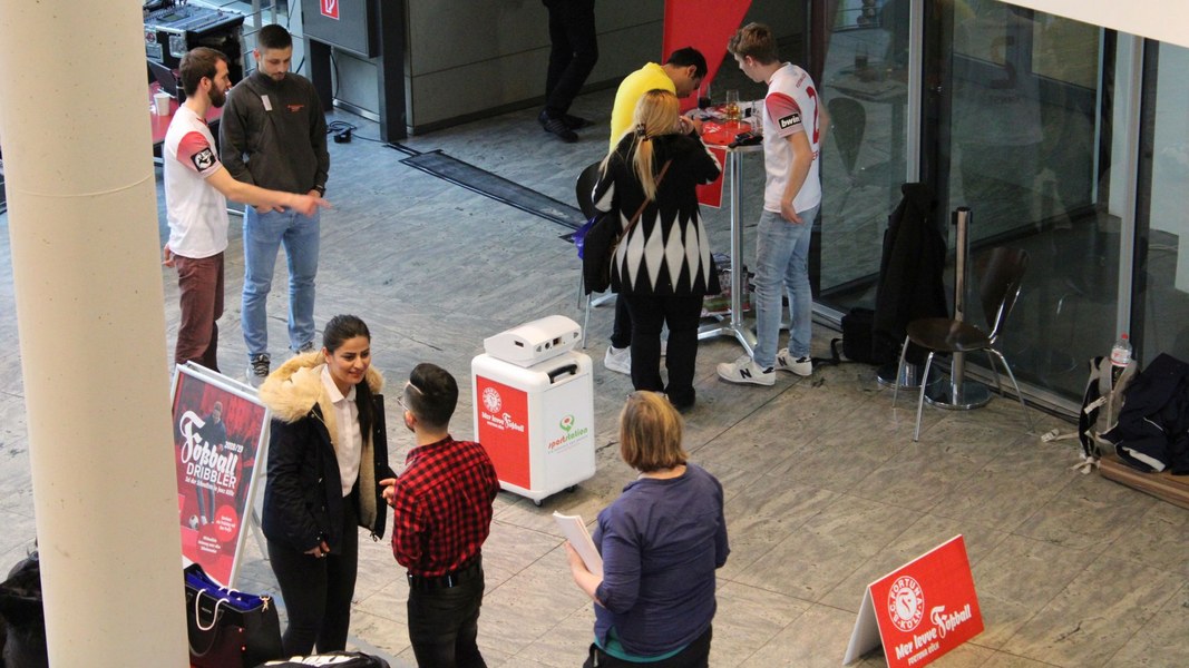 Organisiert vom TÜV Nord nutzten am Mittwoch rund 350 junge Menschen (bis 25 Jahre alt) die Chance, sich in Köln abseits von langwierigen Bewerbungsverfahren interessierten Unternehmen zu präsentieren. Aber auch abseits der Ausbildungsplatzsuche gab es etwas zu erleben. Denn Fortuna Köln war mit dem „Foßballdribbler“ vor Ort. Egal ob Unternehmer oder Ausbildungssuchende, jeder konnte mitmachen – und die eigene Schnelligkeit beim Dribbling unter Beweis stellen. Und das lohnte sich. Schließlich hatte jeder Teilnehmer die Chance, interessante Preise zu gewinnen.