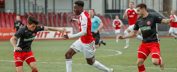 Die Düsseldorfer konnten die ersten drei Partien gegen die Sportfreunde Lotte, den FC Wegberg-Beeck und den SV Rödinghausen gewinnen, die vierte sowie die fünfte Partie endete unentschieden. Nach einer knappen Niederlage gegen den Wuppertaler SV sind sie morgen zu Gast im Südstadion.