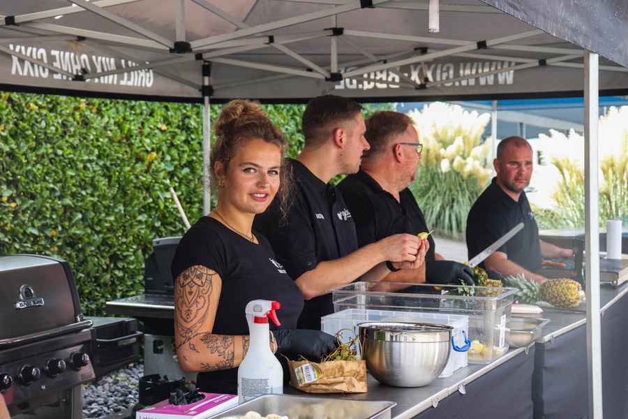Das Team um Store Manager Markus Hörr verzauberte die 80 Gäste mit besonderen Spezialitäten vom Grill, wie z.B. Tomahawk-Steaks, Churizo-Gambas und vielem mehr. Für leckeres Baguette zum Fleisch sorgte die Bäckerei Schmitz &Nittenwilm und die Musik im großartigen Ambiente des gixx House of BBQ legte der DJ Marco Jacobs live auf. Die verschiedenen Cocktails von cocktail-box fanden ebenfalls großen Anklang und mit kühlem Kölsch der Privatbrauerei Gaffel oder einem Wasser der Haaner Felsenquelle blieb keiner durstig.
