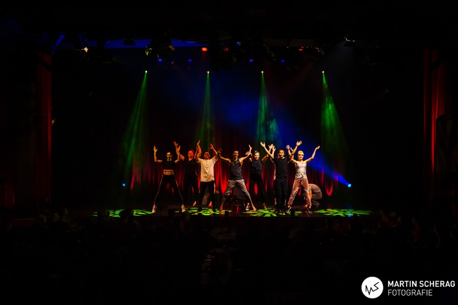 Dann startete das Highlight des Abends. Der Saal wurde verdunkelt und die Show „Slow“ begann. Mit einer Mischung aus dynamischer Artistik und fliegenden Fischen und Katzen begeisterte gleich acht Künstler die Freunde und Partner der Fortuna.