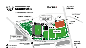 Der Parkplatz P2 an der Vorgebirgsstraße steht für Besucher zur Verfügung. Auch hier wird eine frühzeitige Anreise empfohlen. Sobald die Parkplatzkapazitäten erschöpft sind, wird als Alternative auf den naheliegenden Großmarkt verwiesen.