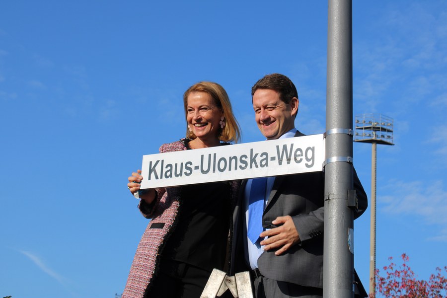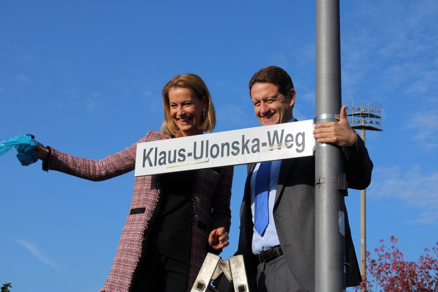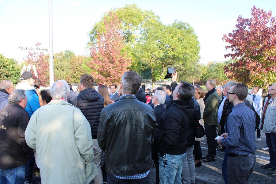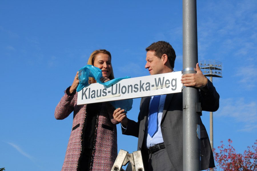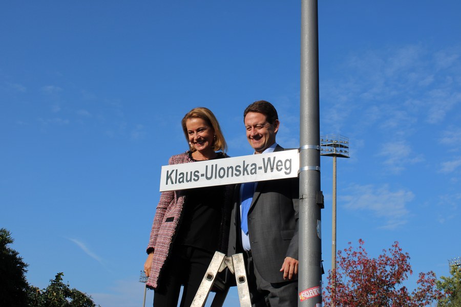 Ab dem heutigen Tage trägt der Weg hinter der Nordkurve des Südstadions einen ganz besonderen Namen: Klaus-Ulonska-Weg. Im Rahmen einer feierlichen Einweihung wurde das Schild des Weges durch Bezirksbürgermeister Mike Homann und Alexandra Adenauer, Tochter von Klaus Ulonska, enthüllt.