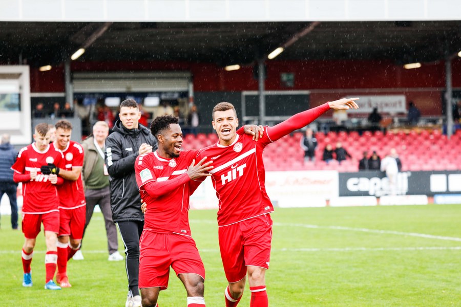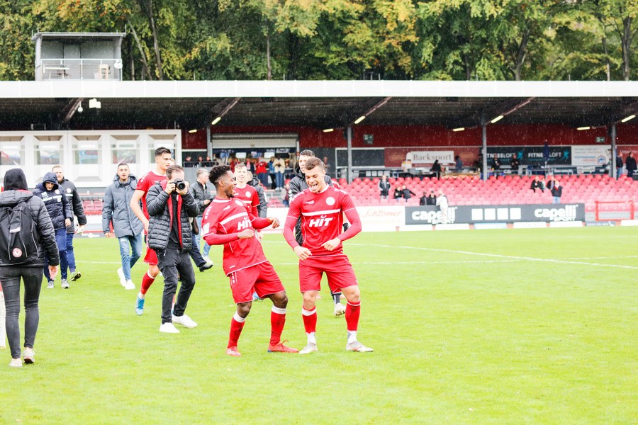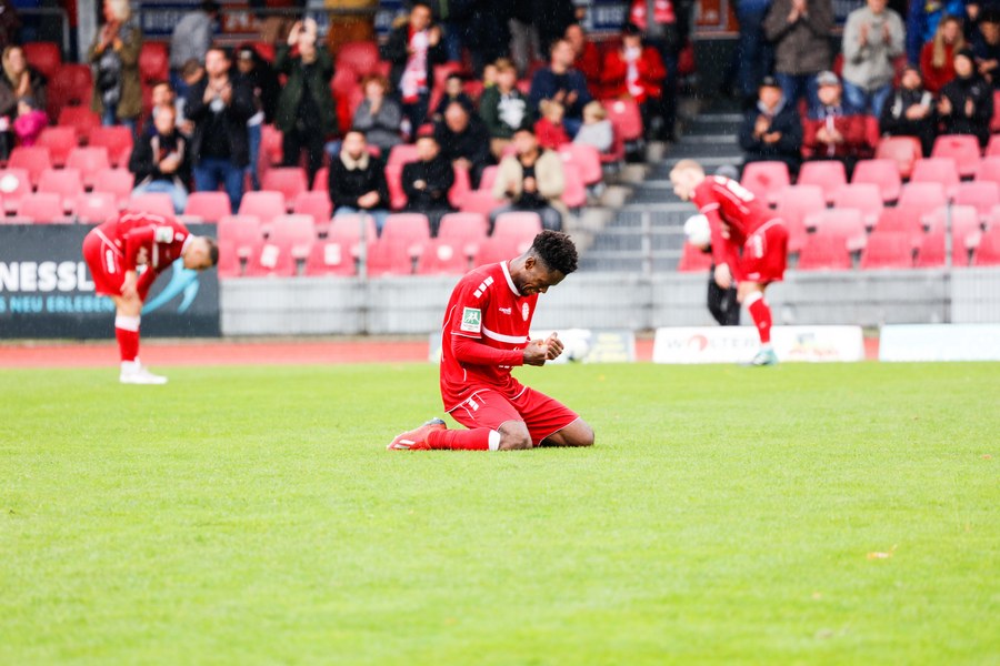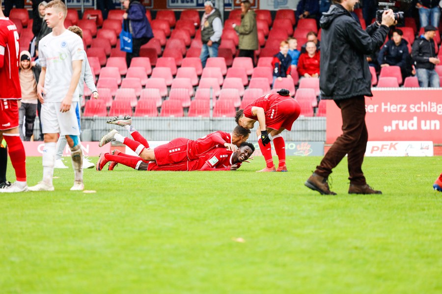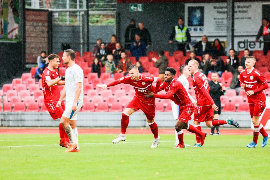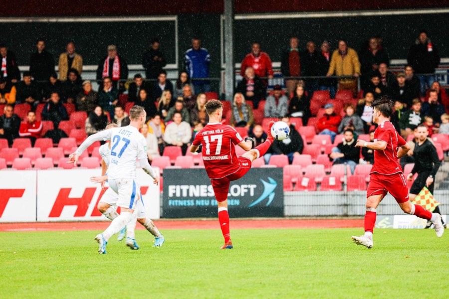 Die zweiten 45 Minuten steckten voller Emotionen und Fortuna erwischte erneut einen guten Start. Wer das Tor von Franko Uzelac vergangene Woche gegen Rot-Weiss Essen nicht gesehen hat, konnte sich heute eine Kopie anschauen. Uzelac ließ sich bei einem Freistoß aus gut 30 Metern nicht lange bitten und zimmerte den Ball ins rechte untere Eck (58.). Im 14. Spiel dieser Regionalliga West gab es dann noch ein Debüt zu feiern. Yannick Filipovic kam für Lionel Salla (63.) und sorgte gleich für Gefahr: Fortuna hatte eine Ecke und der Innenverteidiger wuchtete einen Kopfball auf die Linie (68.). Nach Filipovic brachte Trainer Thomas Stratos noch zwei weitere frische Spieler: Blendi Idrizi kam für Hamza Salman (72.) und Semih Güler für Farid Abderrahmane (79.). Fünf Minuten war Idrizi auf dem Platz, als er versuchte, einen Ball auf Roman Prokoph durchzustecken. Der Stürmer stand jedoch im Abseits. Lotte drückte noch einmal auf den Anschluss, setzte den Ball aber zunächst knapp neben das Tor (85.) und scheiterte schließlich an der Latte, ehe der Schiedsrichter auf Abseits entschied (93.). Fortuna ließ sich den Sieg nicht mehr nehmen und fuhr den dritten Sieg in Folge ein.
