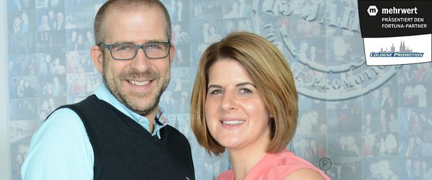 Melanie und Markus Kasel, Geschäftsführung Cologne Promotion: " Wir sind Fortuna-Partner, weil die familiäre Verbundenheit bei uns und unseren Partnern ebenso groß geschrieben wird wie bei der Fortuna!"