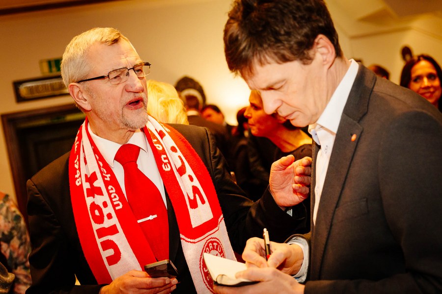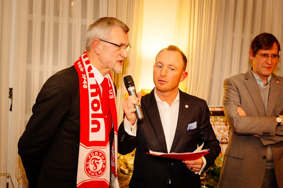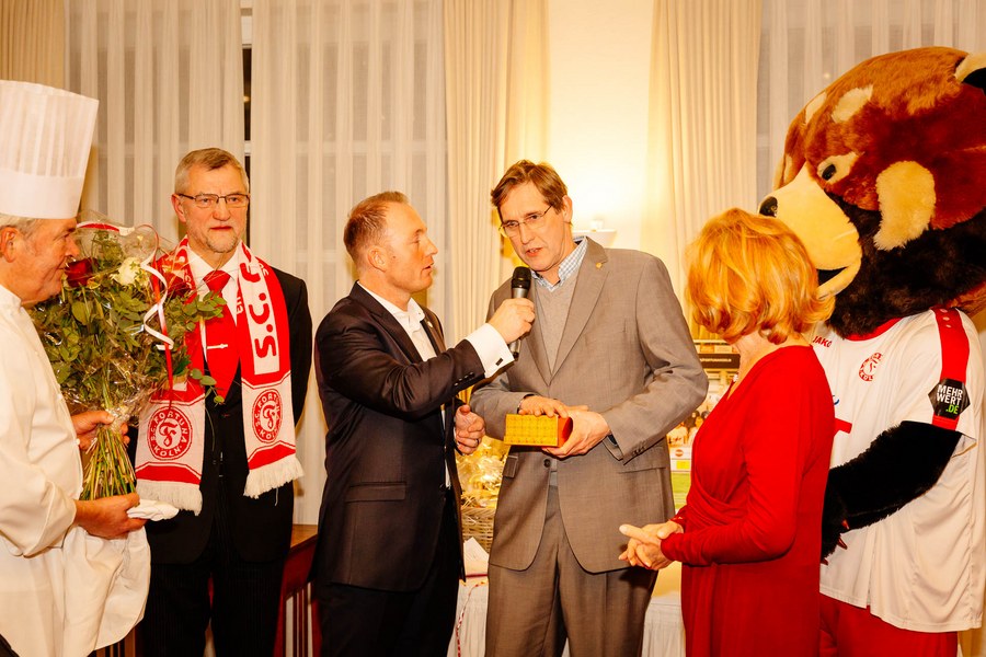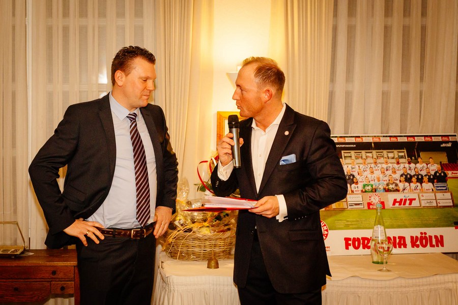 Des Weiteren blickte Michael W. Schwetje, Geschäftsführer der Fortuna Köln Spiel­betriebs­gesell­schaft auf die wirtschaftliche und sportliche Entwicklung. Fortuna-Trainer Uwe Koschinat schaute schließlich auf die sportlichen Aufgaben voraus. Am kommenden Samstag steht hier mit dem Heimspiel gegen den 1. FC Magdeburg der Rückrundenauftakt in die 3. Liga an. „Diese Veranstaltung soll die Fortuna-Familie in besonderem Ambiente einschwören auf das anstehende Jahr. Im letzten Jahr haben wir mit Erhard Schäfer 100 Leute begrüßen können, diesmal waren es 150. Man sieht auch hier, wie sich das Netzwerk entwickelt und weiter zusammen wächst. Ein großer Dank gilt Erhard Schäfer und dem gesamten Team vom Landhaus Kuckuck für diesen besonderen Abend“, zeigte sich Benjamin Bruns, Leiter Sponsoring & Vertrieb, mit der Veranstaltung zufrieden.