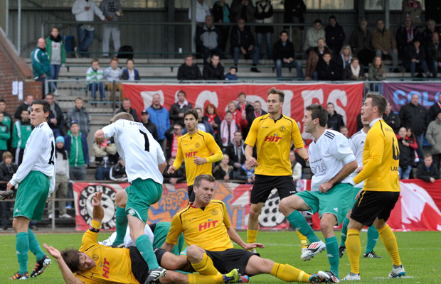 Der Pokal hat seine eigenen Gesetze – Ein wahrlich abgedroschener Spruch, der aber immer wieder belegt wird. So auch am heutigen Nachmittag im Stadion an der Menzenberger Straße. Die Fortuna ging als klarer Favorit in die Partie gegen den Landesligisten aus Bad Honnef und wollte dieser Rolle auch gerecht werden. Uwe Koschinat veränderte seine Startformation im Vergleich zum Spiel gegen Bergisch Gladbach auf fünf Positionen. Sievers, Kühn, Zinke, Lejan und Cannizzaro rückten in die Anfangself. Die Fortuna begann konzentriert und zielstrebig. Bereits nach zehn Minuten sorgte Mitja Schäfer für die beruhigende 1:0-Führung. Der Kapitän wurde mustergültig von Massimo Cannizzaro im Sechzehner bedient und konnte den Ball souverän aus sieben Metern einköpfen.